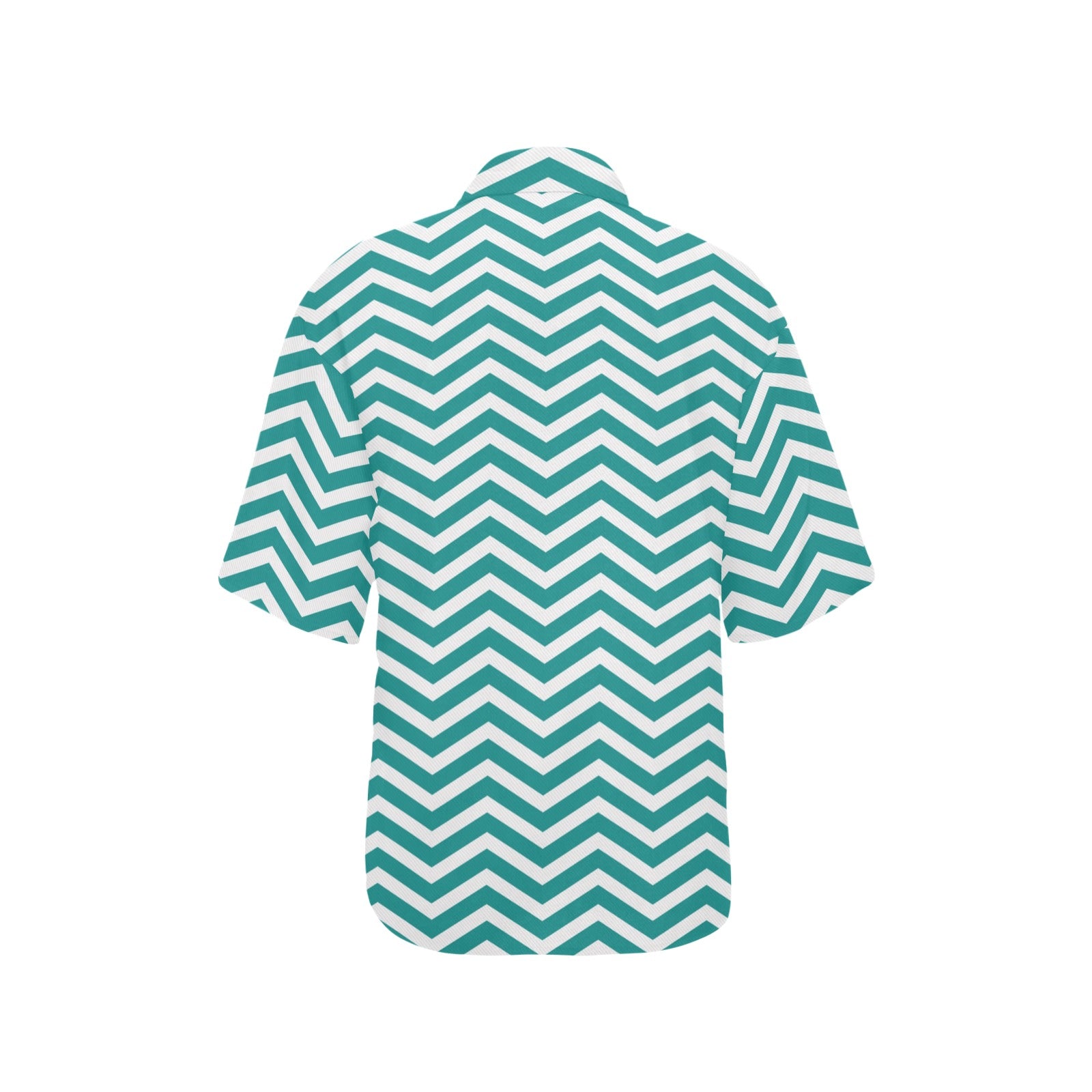 Chevron Teal Pattern Print Design 02 Women's Hawaiian Shirt