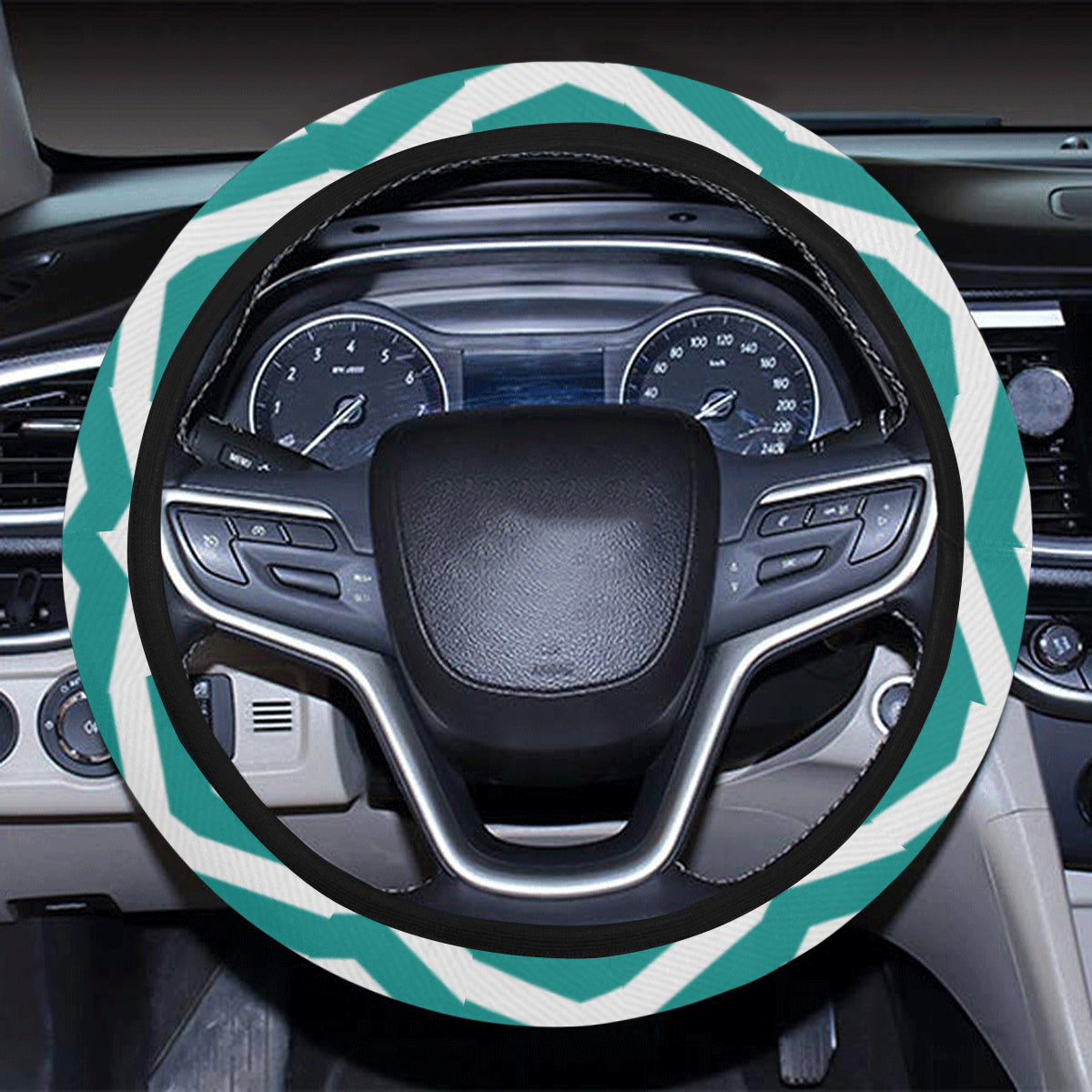 Chevron Teal Pattern Print Design 02 Steering Wheel Cover with Elastic Edge