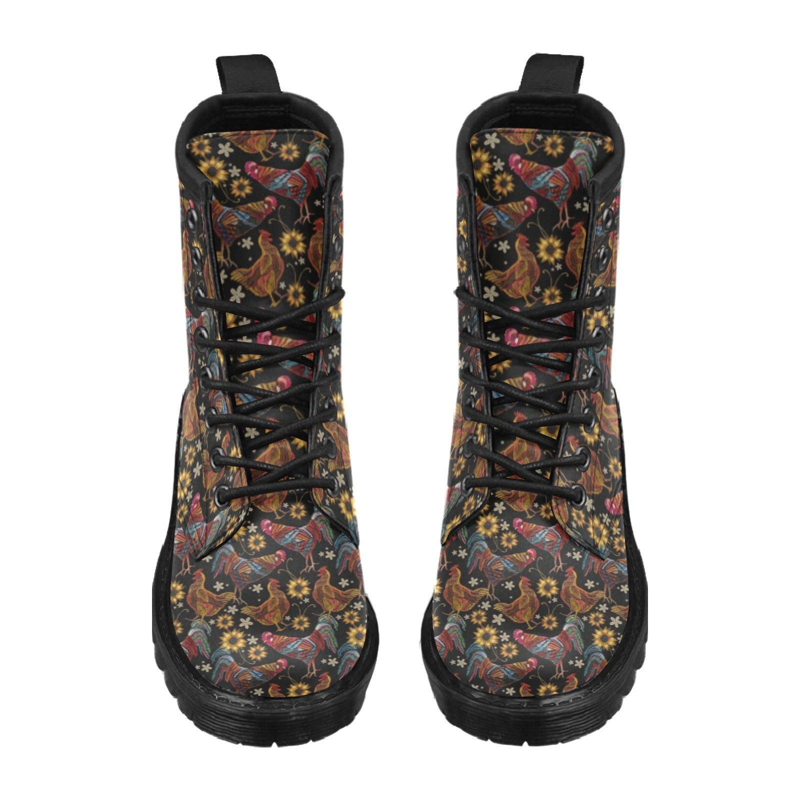 Chicken Embroidery Style Women's Boots Made to Order Item. It is hand-cut and sewn just for your order! This process starts as soon as your order is placed and may have a processing time of 5-9 business days before it ships.