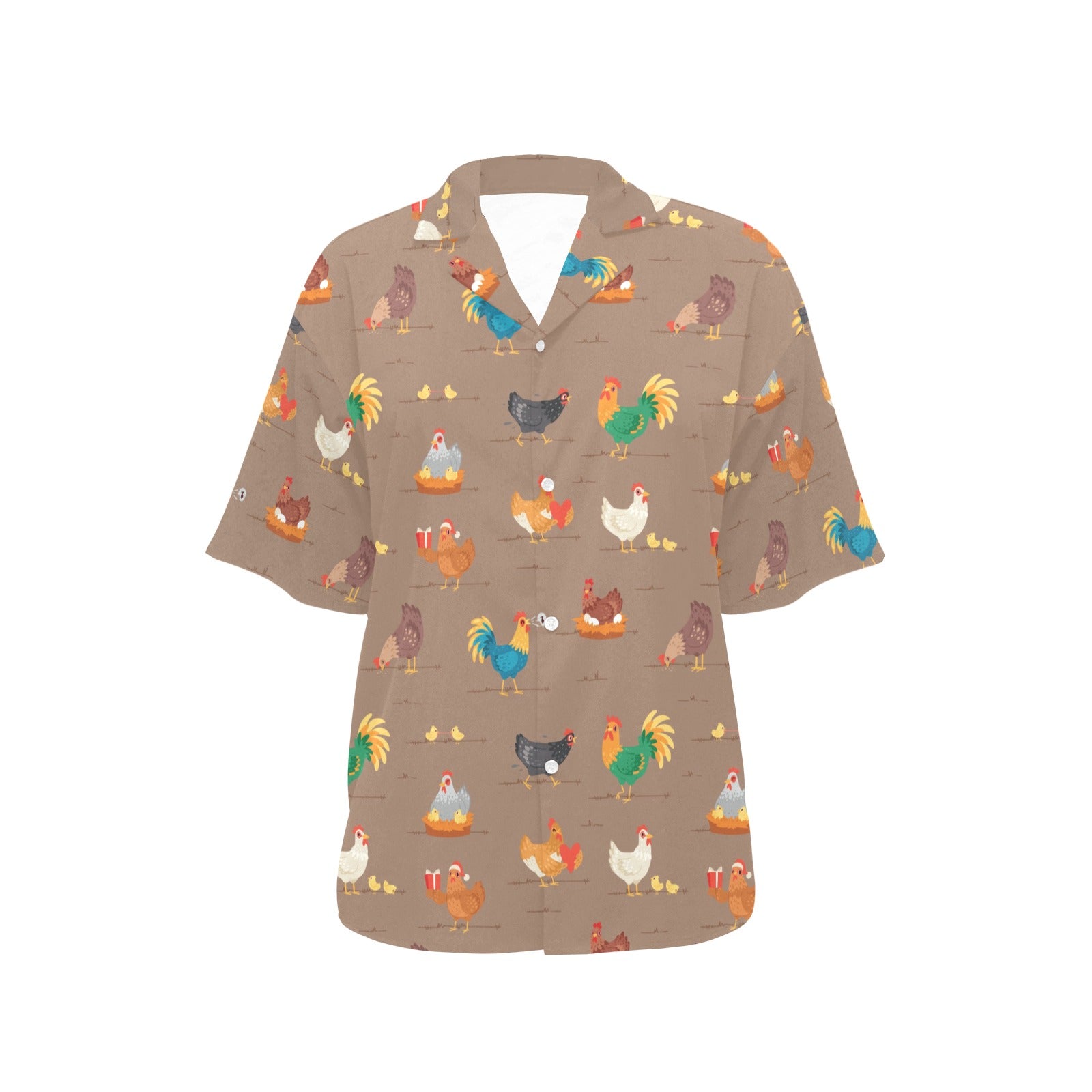 Chicken Happy Print Pattern Women's Hawaiian Shirt