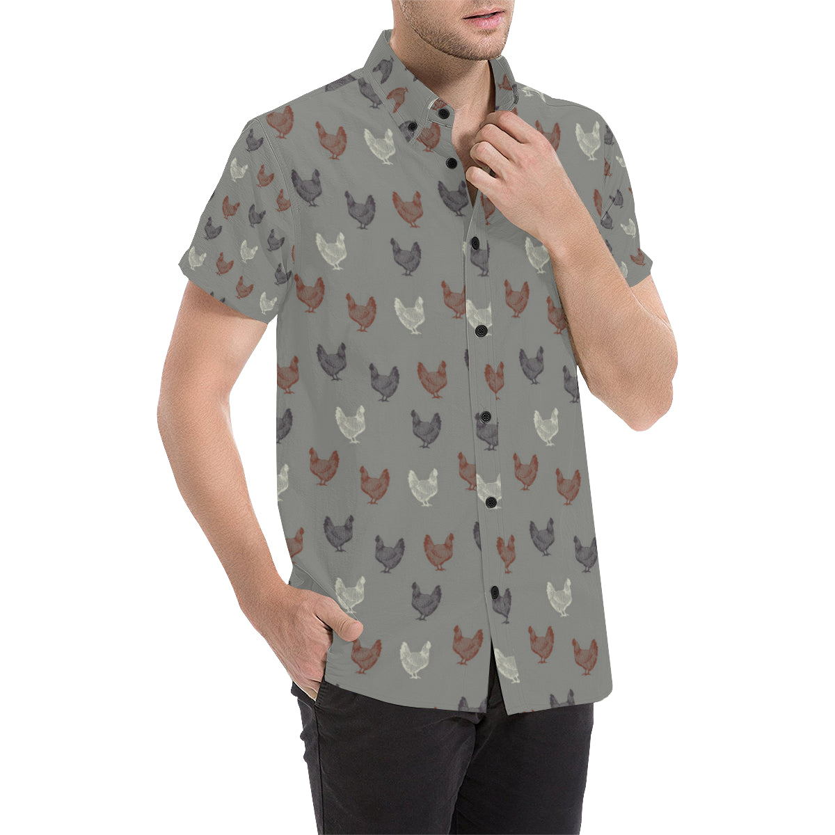 Chicken Pattern Print Design 01 Men's Short Sleeve Button Up Shirt Made to Order Item. It is hand-cut and sewn just for your order! This process starts as soon as your order is placed and may have a processing time of 5-9 business days before it ships.