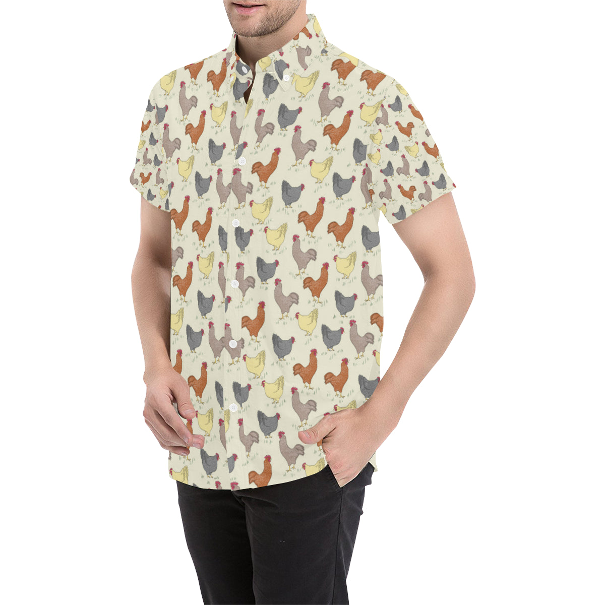 Chicken Pattern Print Design 05 Men's Short Sleeve Button Up Shirt Made to Order Item. It is hand-cut and sewn just for your order! This process starts as soon as your order is placed and may have a processing time of 5-9 business days before it ships.