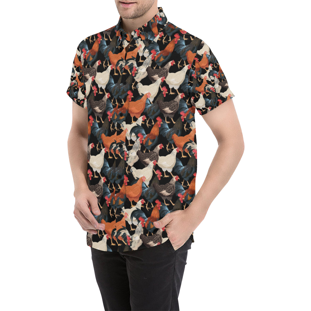 Chicken Print Pattern Men's Short Sleeve Button Up Shirt Made to Order Item. It is hand-cut and sewn just for your order! This process starts as soon as your order is placed and may have a processing time of 5-9 business days before it ships.