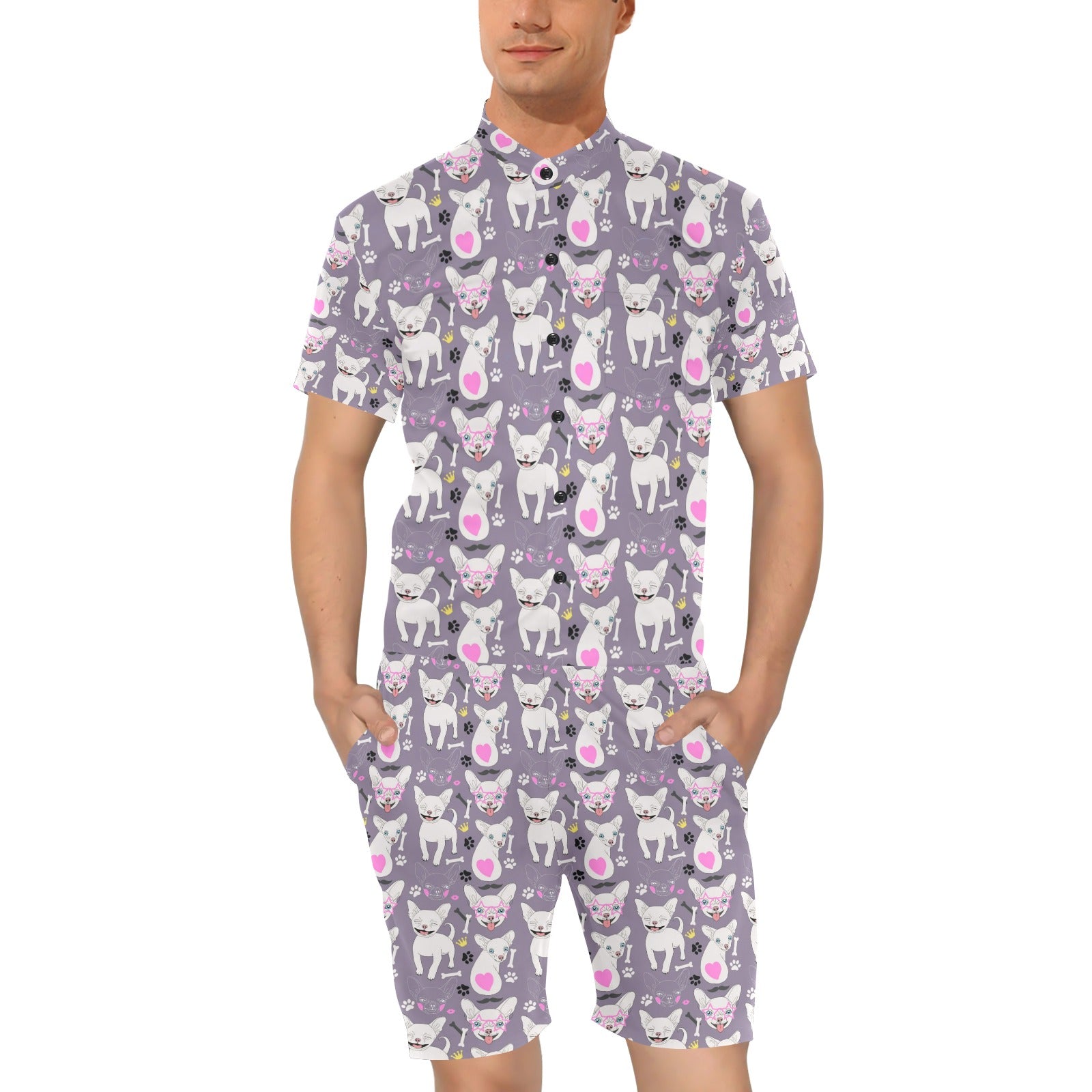 Chihuahua Happy Pattern Men's Romper
