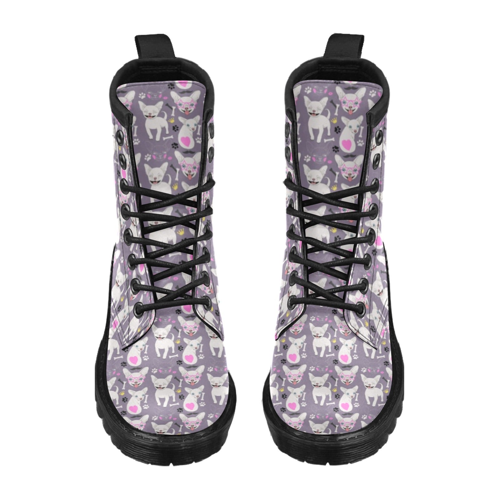 Chihuahua Happy Pattern Women's Boots Made to Order Item. It is hand-cut and sewn just for your order! This process starts as soon as your order is placed and may have a processing time of 5-9 business days before it ships.