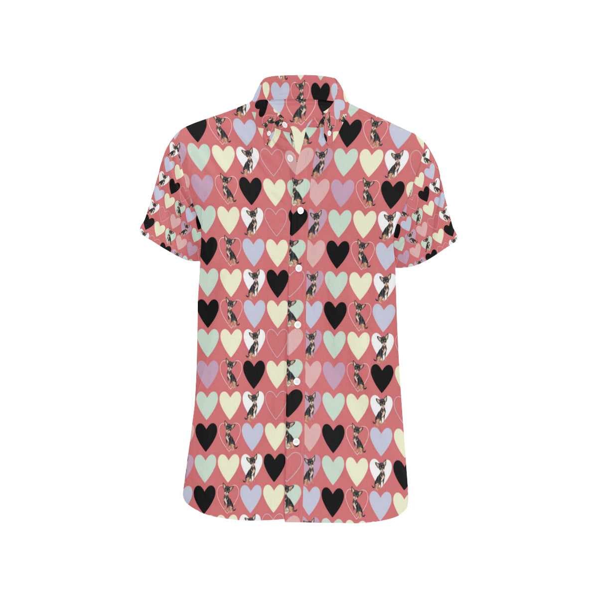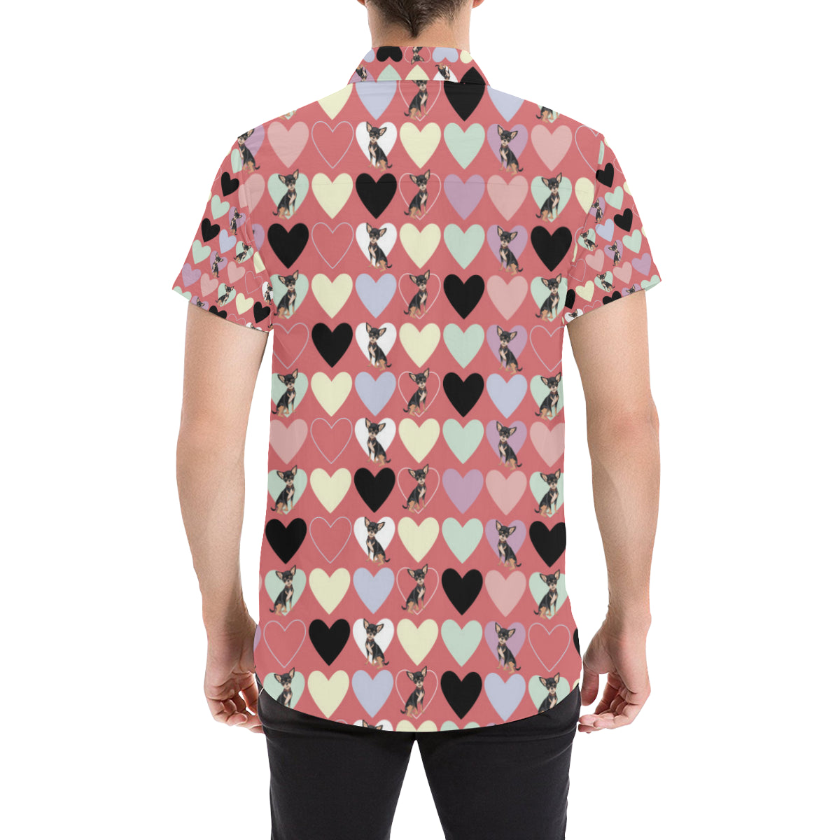 Chihuahua Pattern Print Design 01 Men's Short Sleeve Button Up Shirt Made to Order Item. It is hand-cut and sewn just for your order! This process starts as soon as your order is placed and may have a processing time of 5-9 business days before it ships.