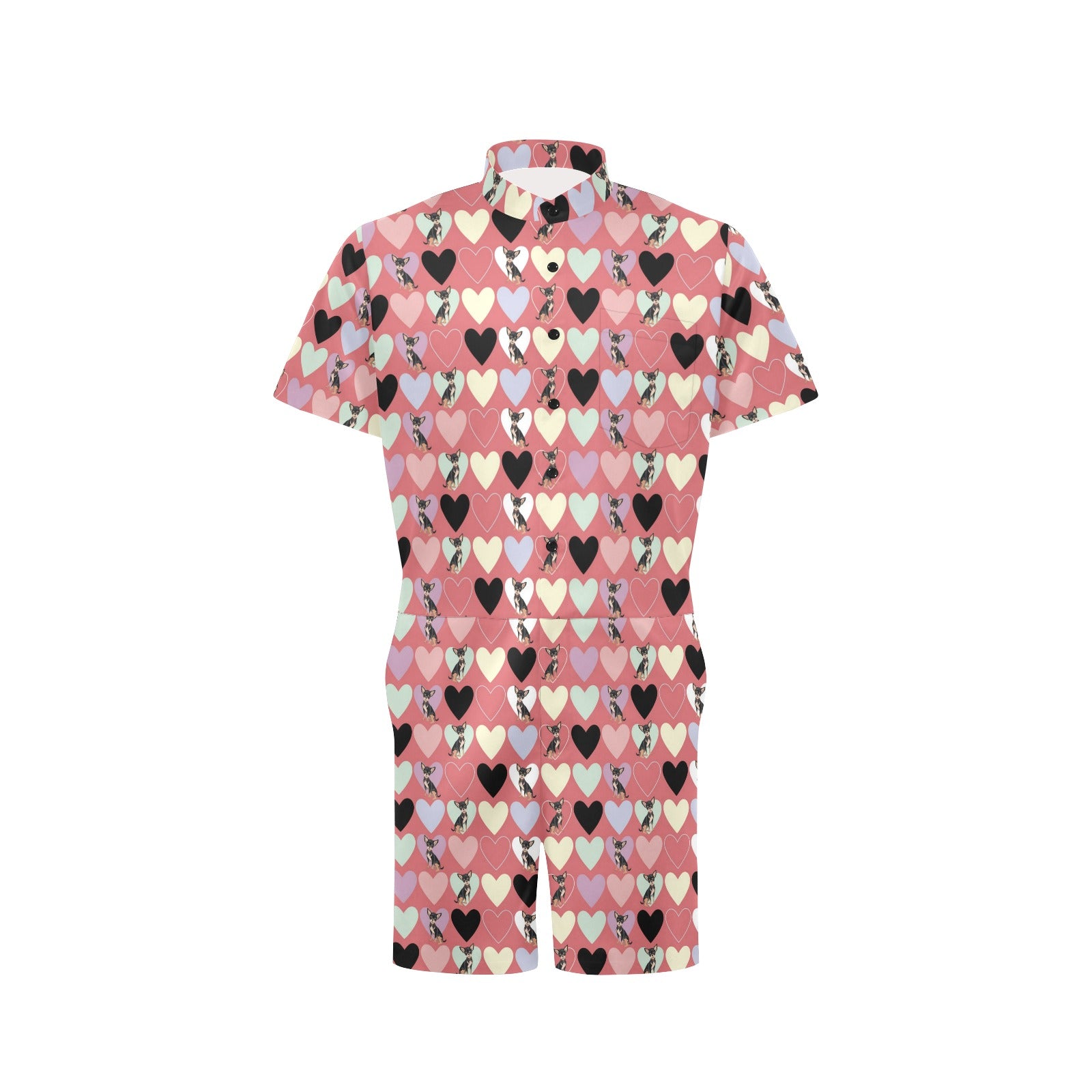 Chihuahua Pattern Print Design 01 Men's Romper Made to Order Item. It is hand-cut and sewn just for your order! This process starts as soon as your order is placed and may have a processing time of 5-9 business days before it ships.