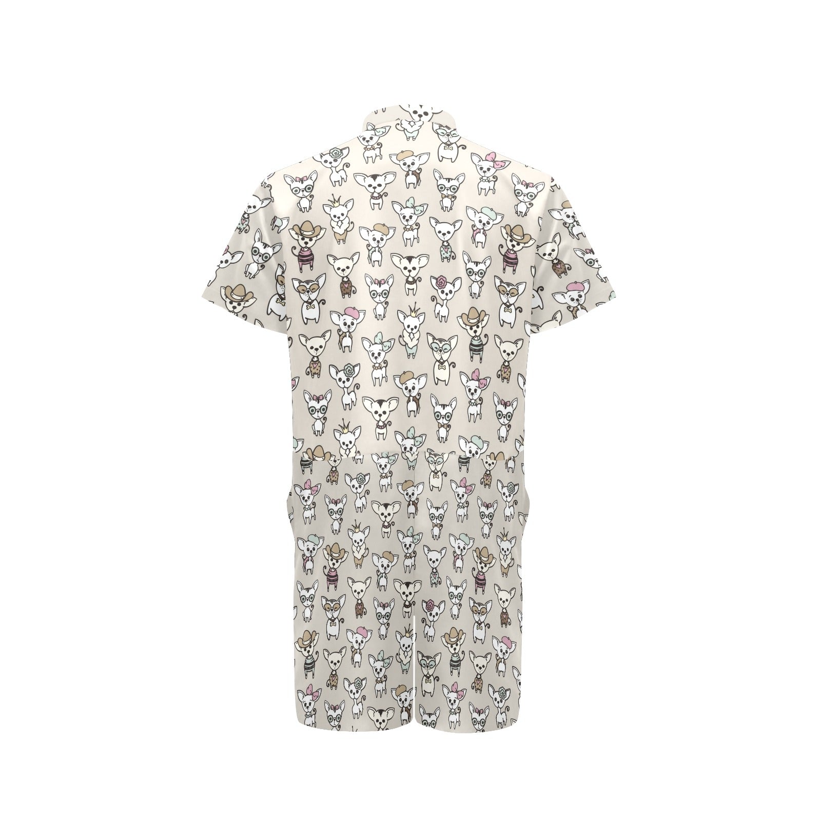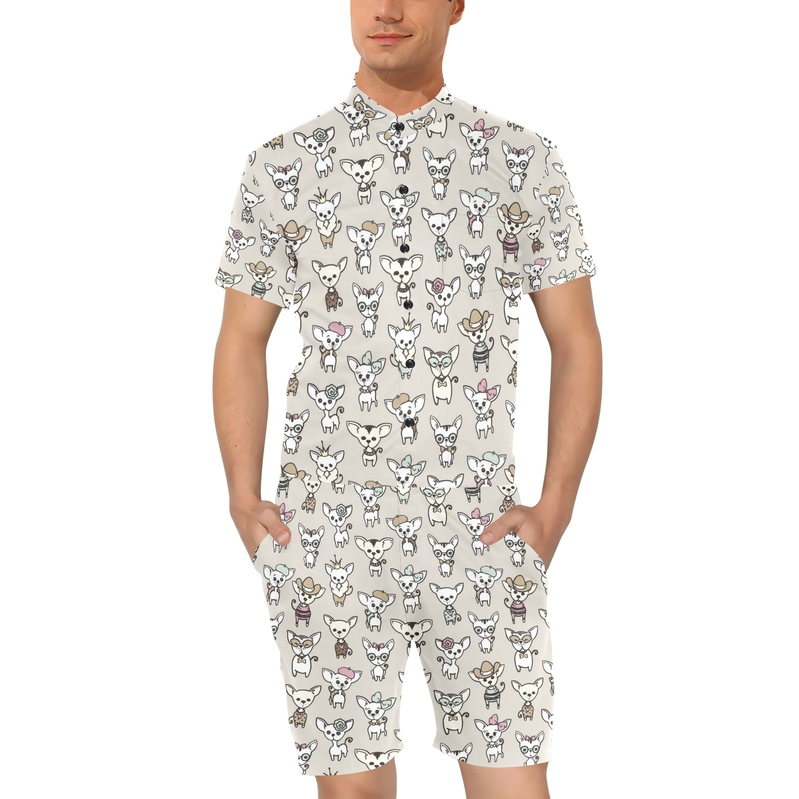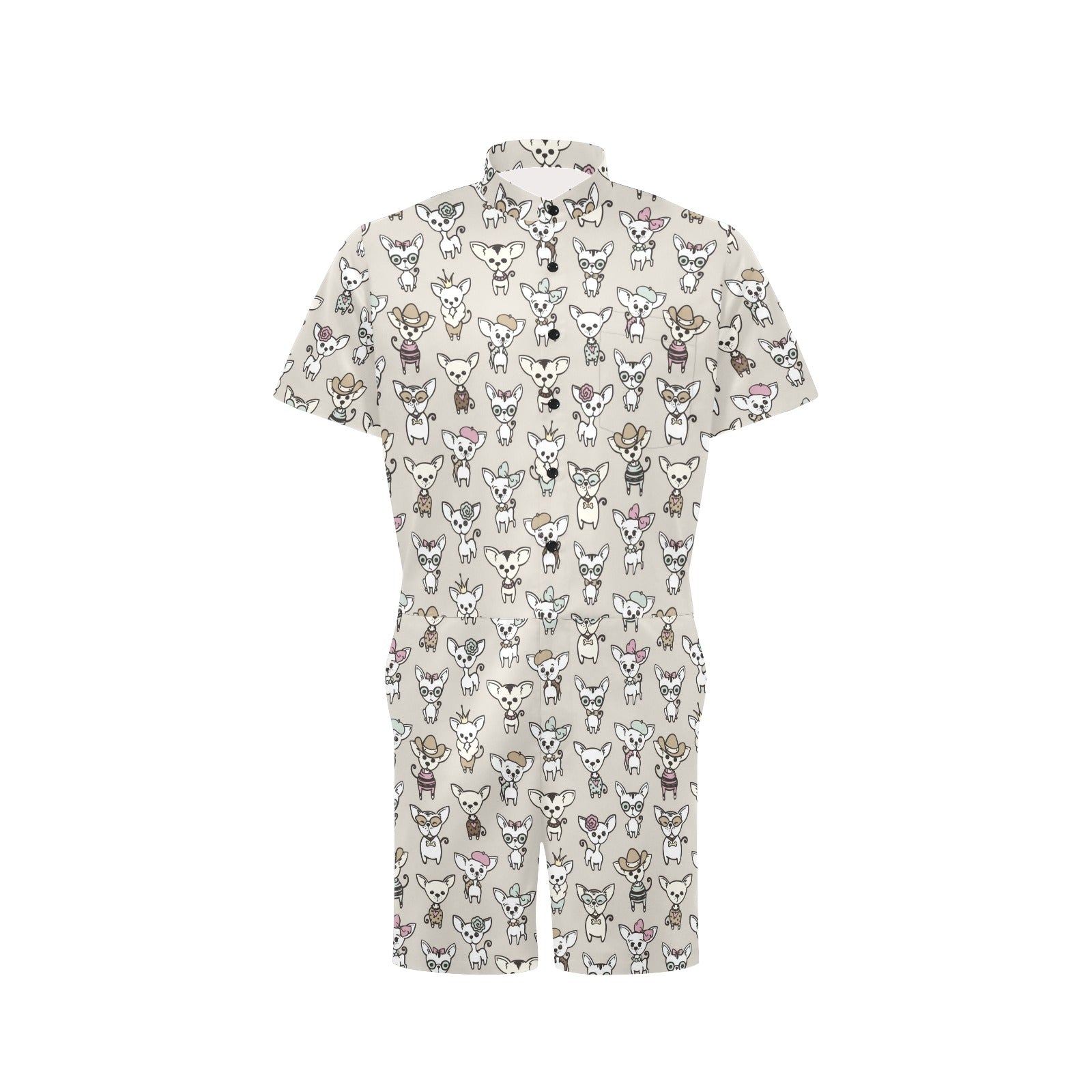 Chihuahua Pattern Print Design 02 Men's Romper Made to Order Item. It is hand-cut and sewn just for your order! This process starts as soon as your order is placed and may have a processing time of 5-9 business days before it ships.