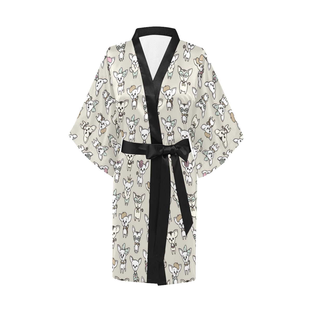 Chihuahua Pattern Print Design 02 Women's Short Kimono Made to Order Item. It is hand-cut and sewn just for your order! This process starts as soon as your order is placed and may have a processing time of 5-9 business days before it ships.