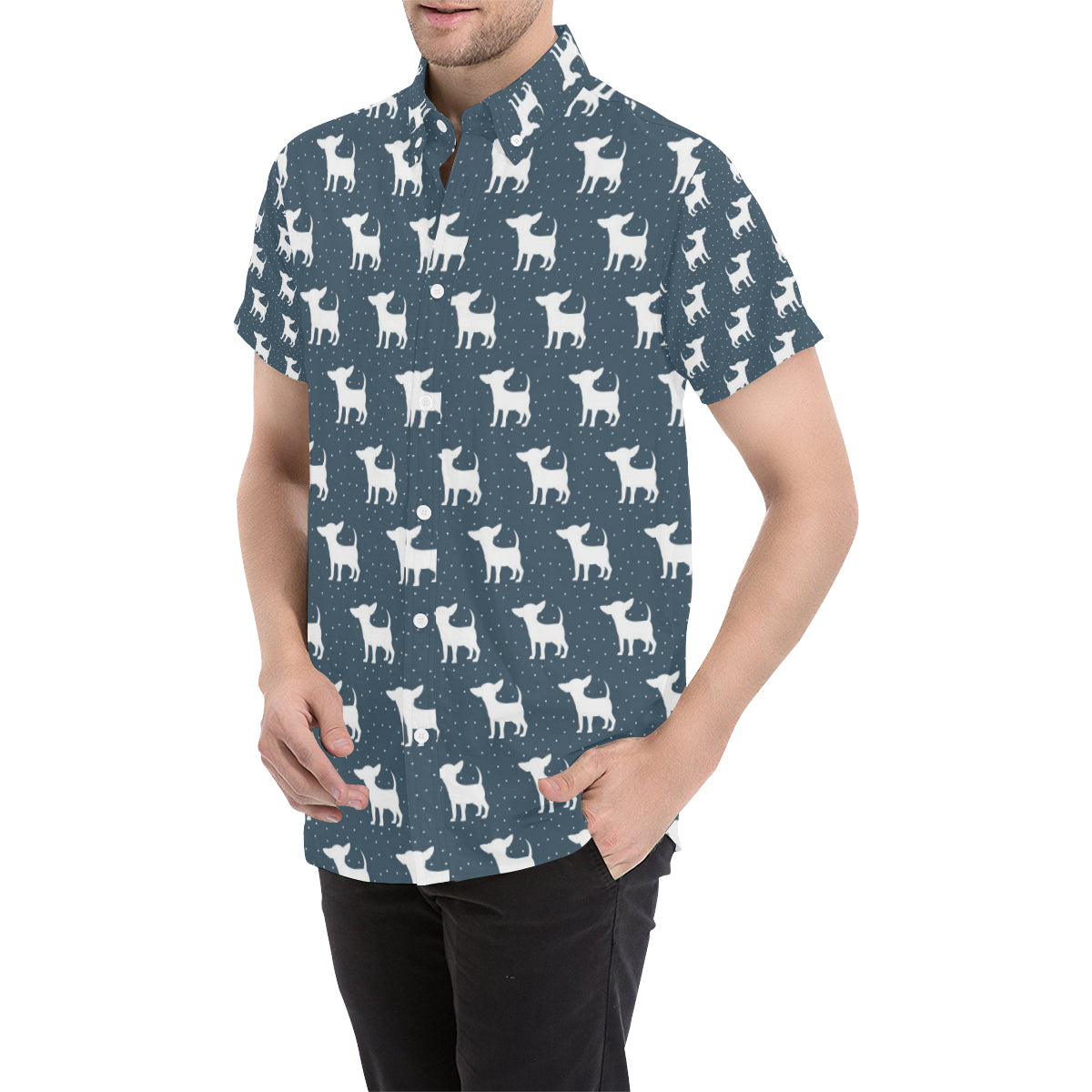 Chihuahua Pattern Print Design 03 Men's Short Sleeve Button Up Shirt Made to Order Item. It is hand-cut and sewn just for your order! This process starts as soon as your order is placed and may have a processing time of 5-9 business days before it ships.