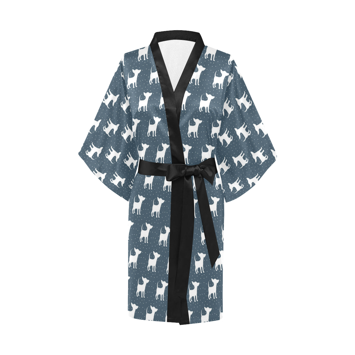 Chihuahua Pattern Print Design 03 Women's Short Kimono Made to Order Item. It is hand-cut and sewn just for your order! This process starts as soon as your order is placed and may have a processing time of 5-9 business days before it ships.