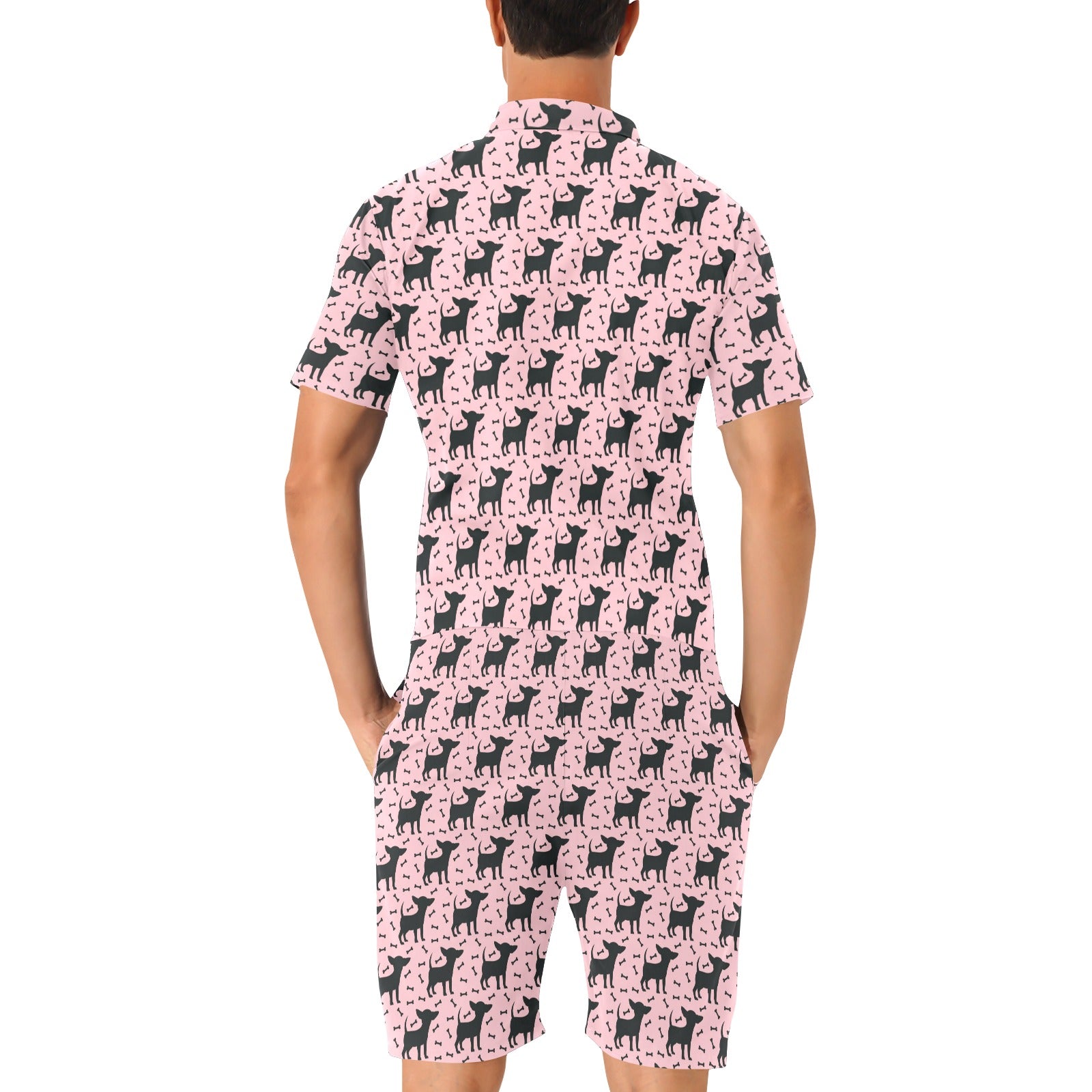 Chihuahua Pink Print Pattern Men's Romper