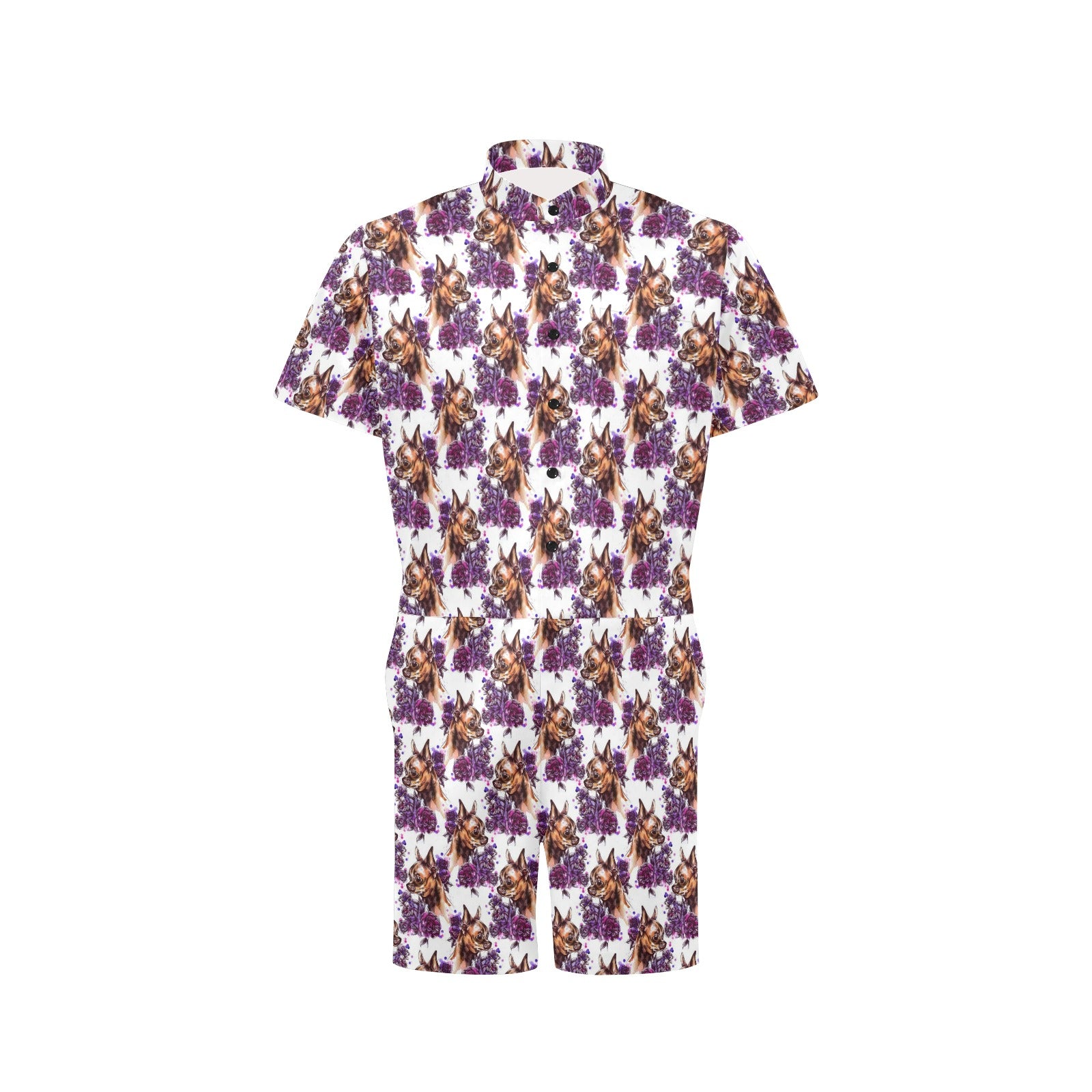Chihuahua Purple Floral Men's Romper