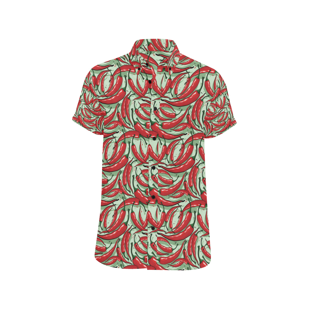 Chilli Pepper Pattern Print Design 04 Men's Short Sleeve Button Up Shirt Made to Order Item. It is hand-cut and sewn just for your order! This process starts as soon as your order is placed and may have a processing time of 5-9 business days before it ships.