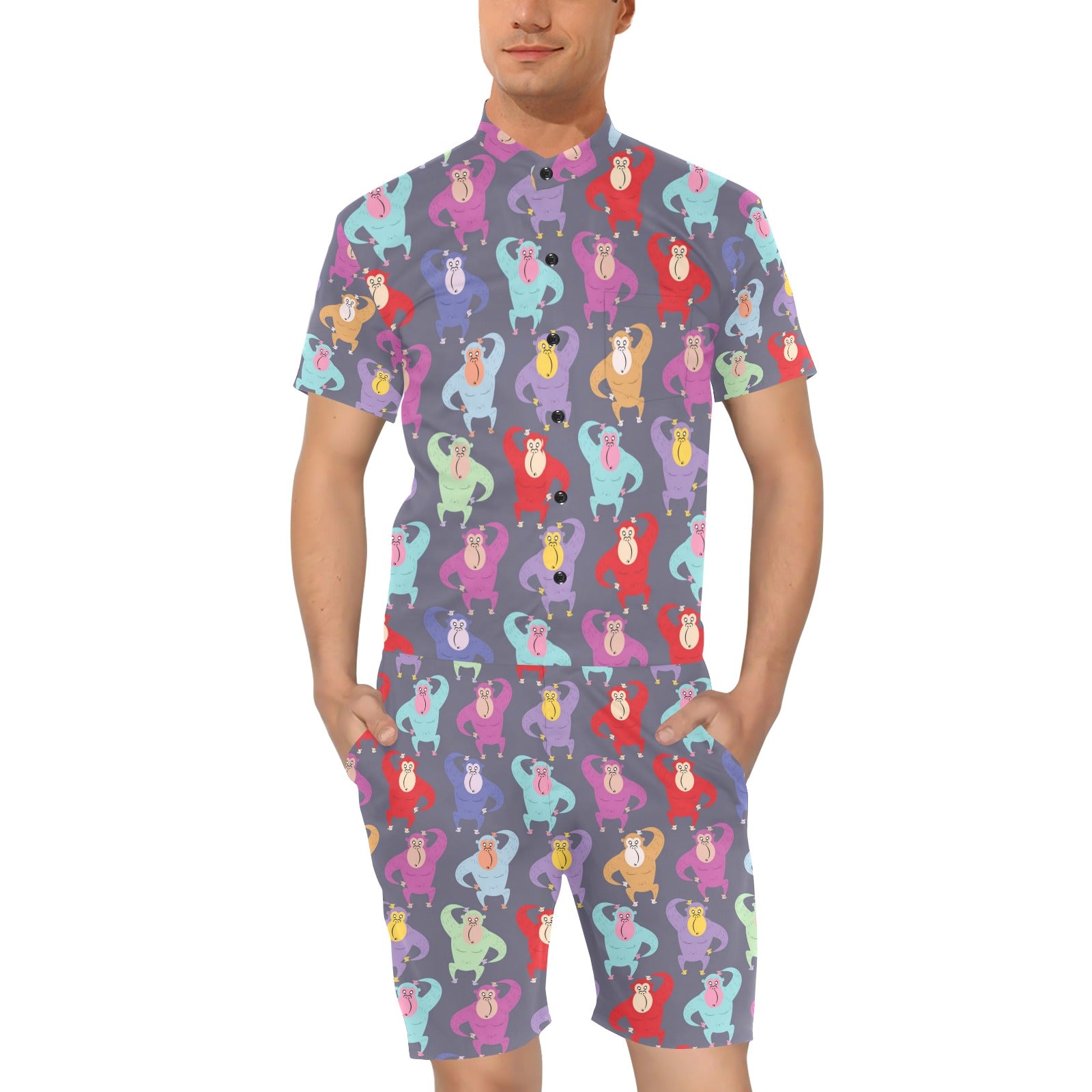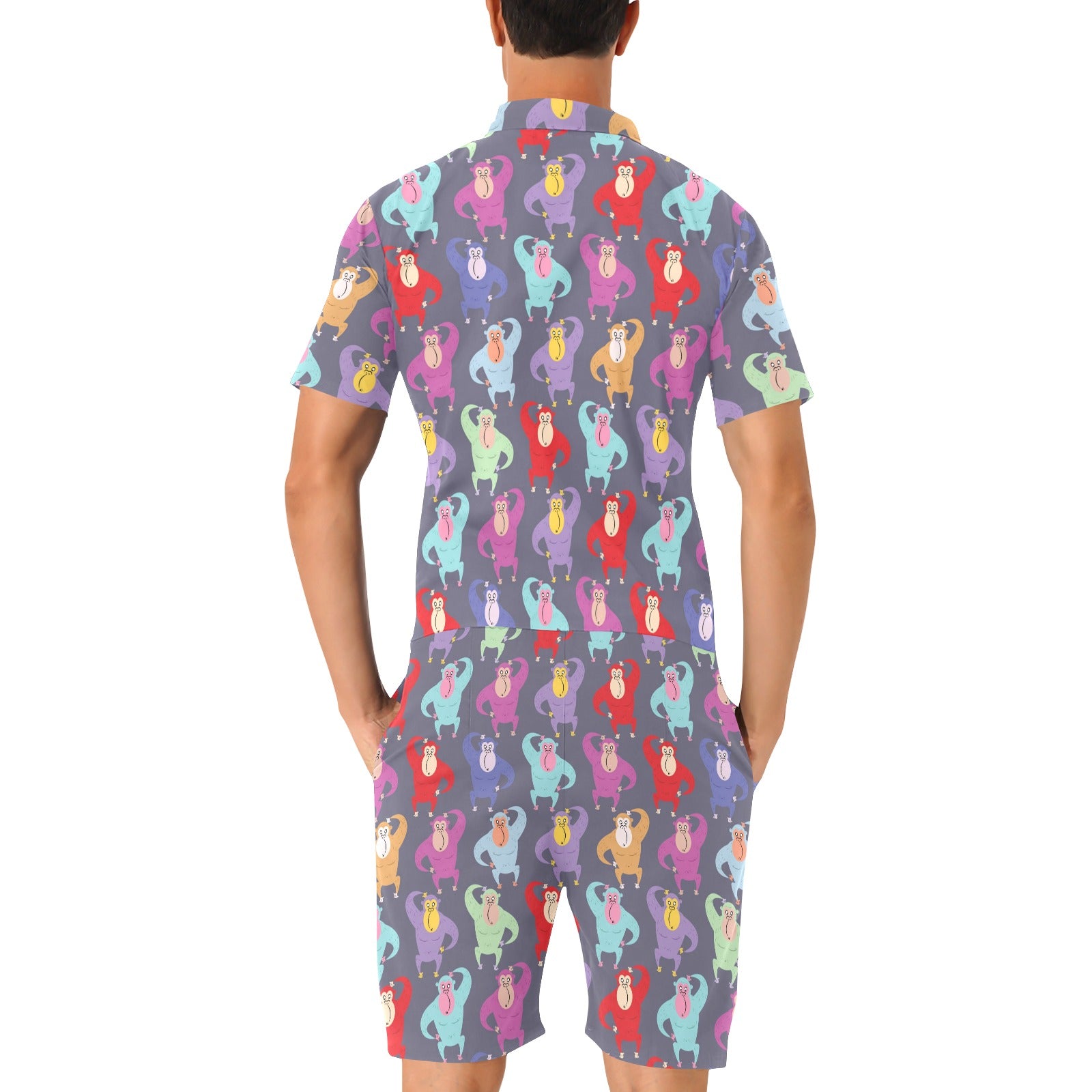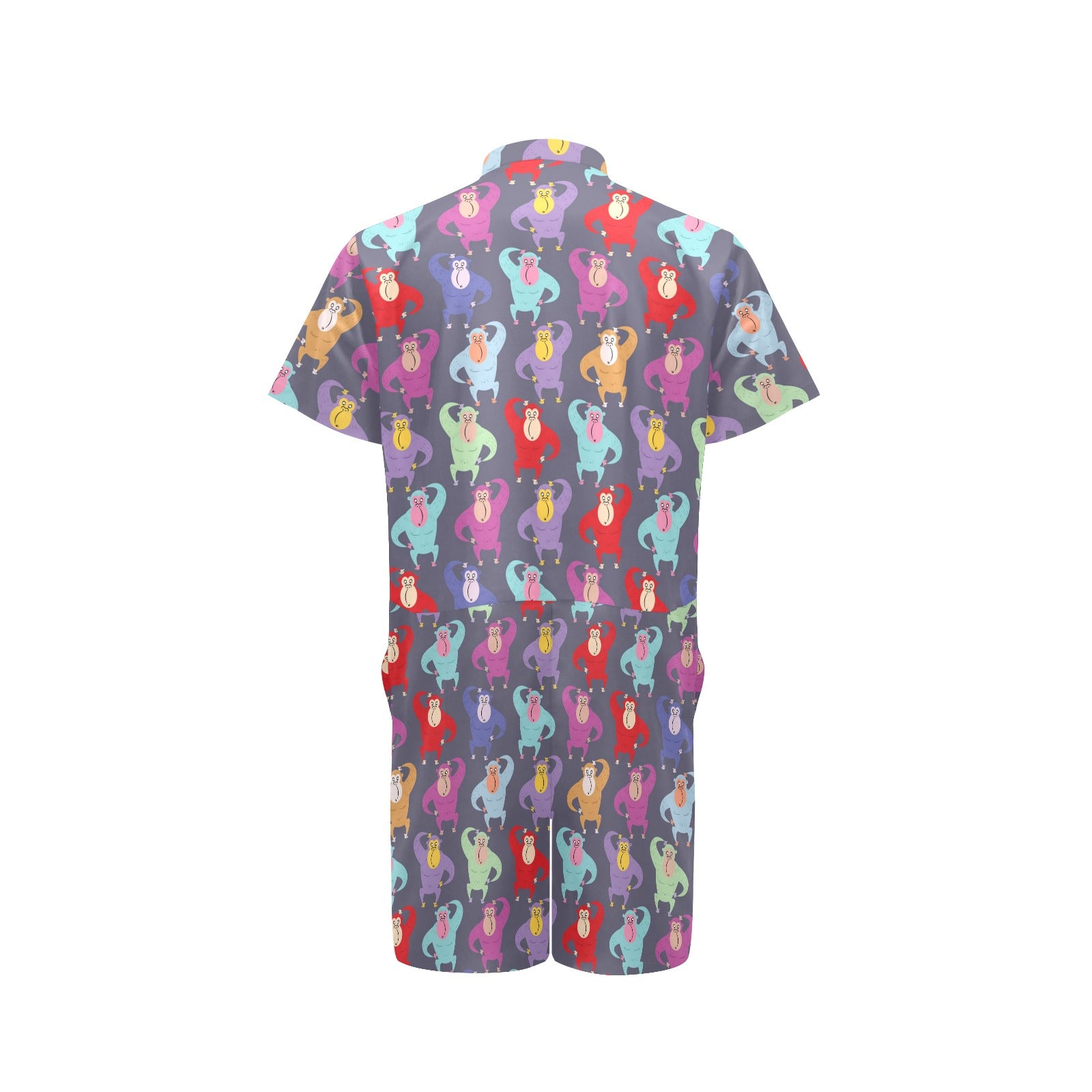 Chimpanzee Pattern Print Design 03 Men's Romper Made to Order Item. It is hand-cut and sewn just for your order! This process starts as soon as your order is placed and may have a processing time of 5-9 business days before it ships.