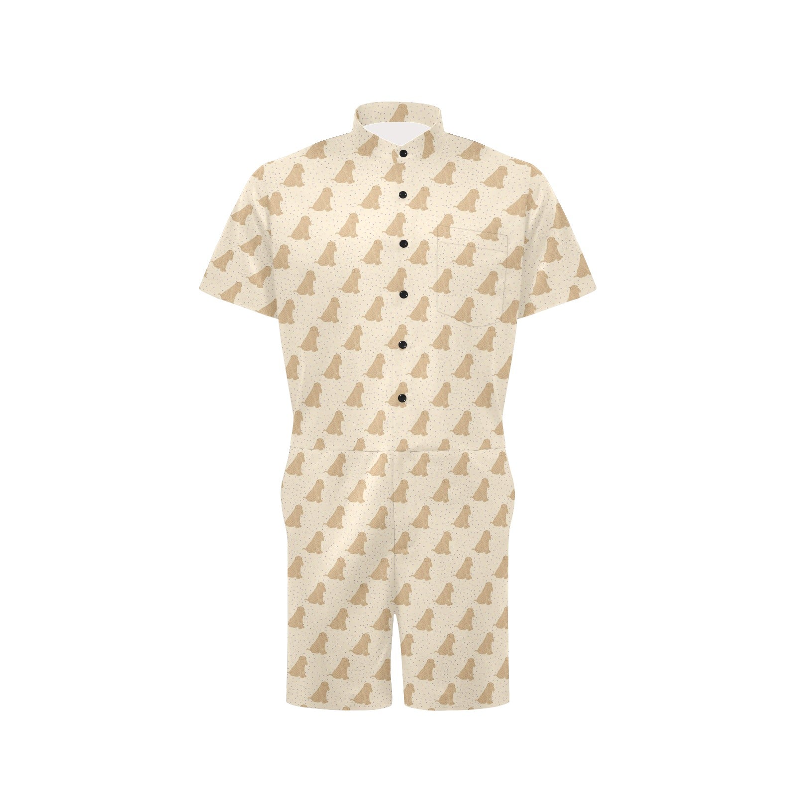 Chinese Shar Pei Pattern Print Design 01 Men's Romper Made to Order Item. It is hand-cut and sewn just for your order! This process starts as soon as your order is placed and may have a processing time of 5-9 business days before it ships.