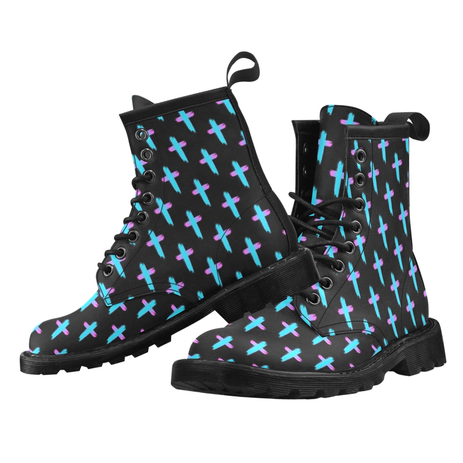 Christian Cross neon Pattern Women's Boots Made to Order Item. It is hand-cut and sewn just for your order! This process starts as soon as your order is placed and may have a processing time of 5-9 business days before it ships.