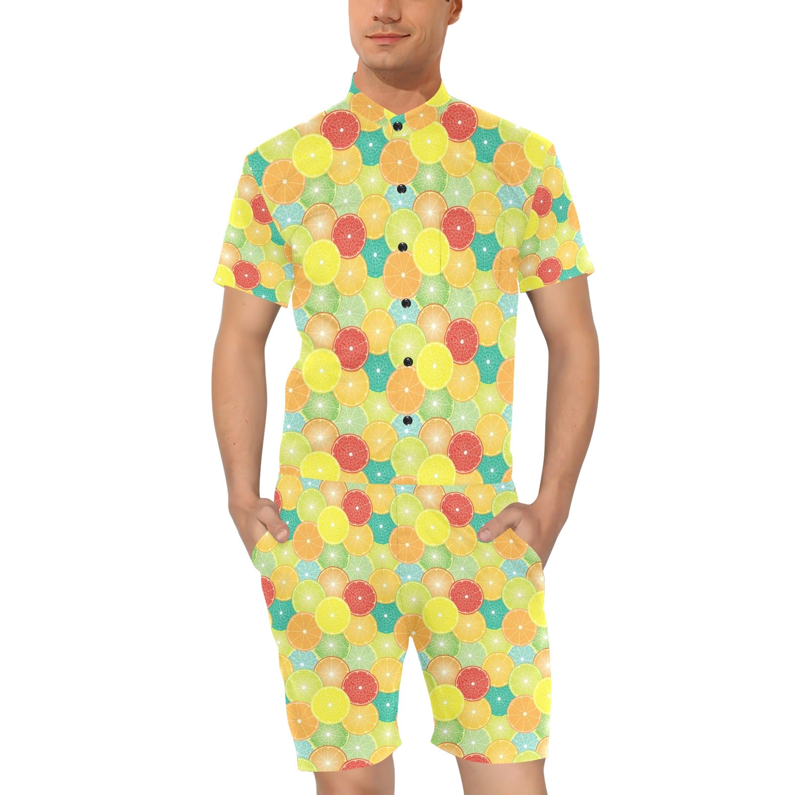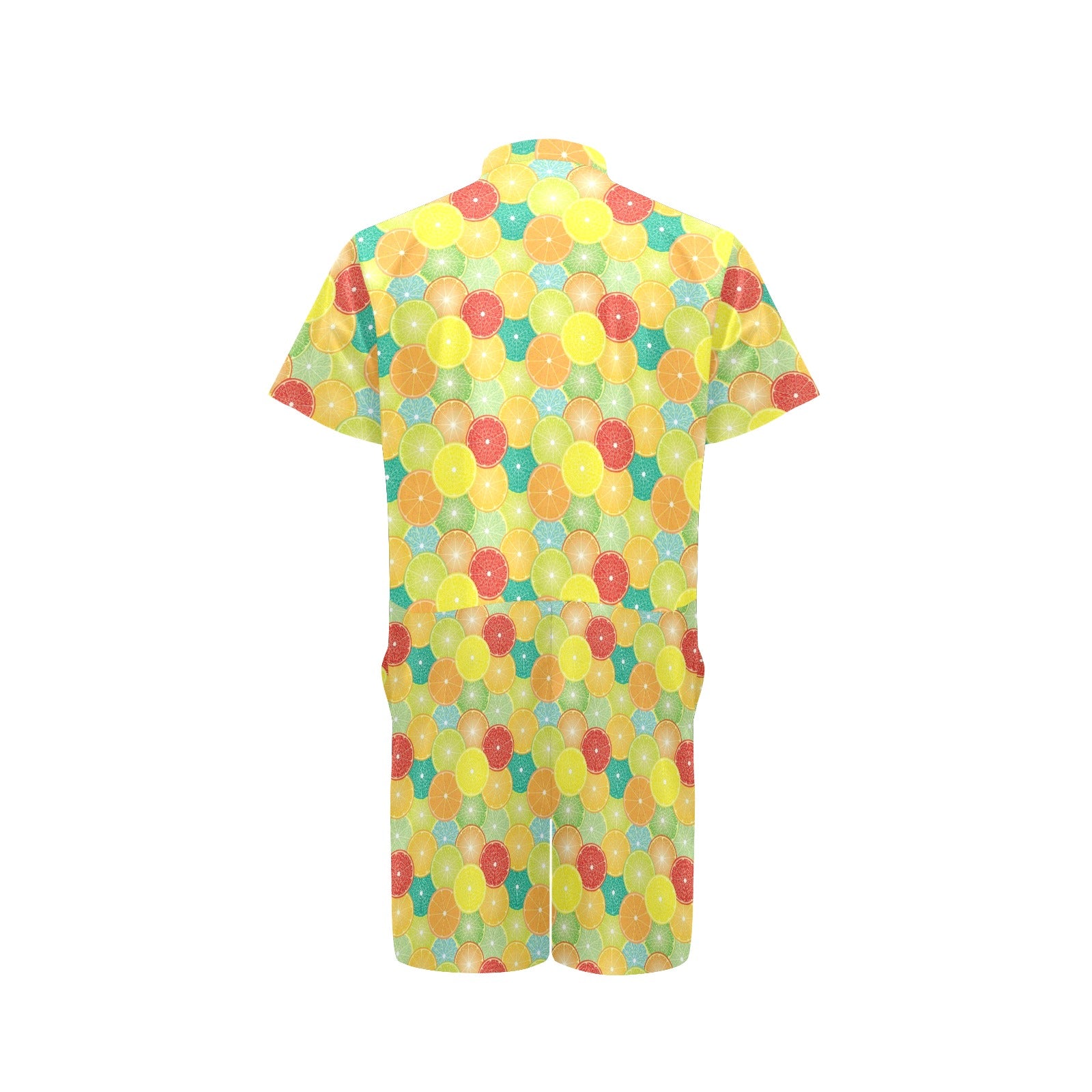 Citrus Pattern Print Design 01 Men's Romper Made to Order Item. It is hand-cut and sewn just for your order! This process starts as soon as your order is placed and may have a processing time of 5-9 business days before it ships.