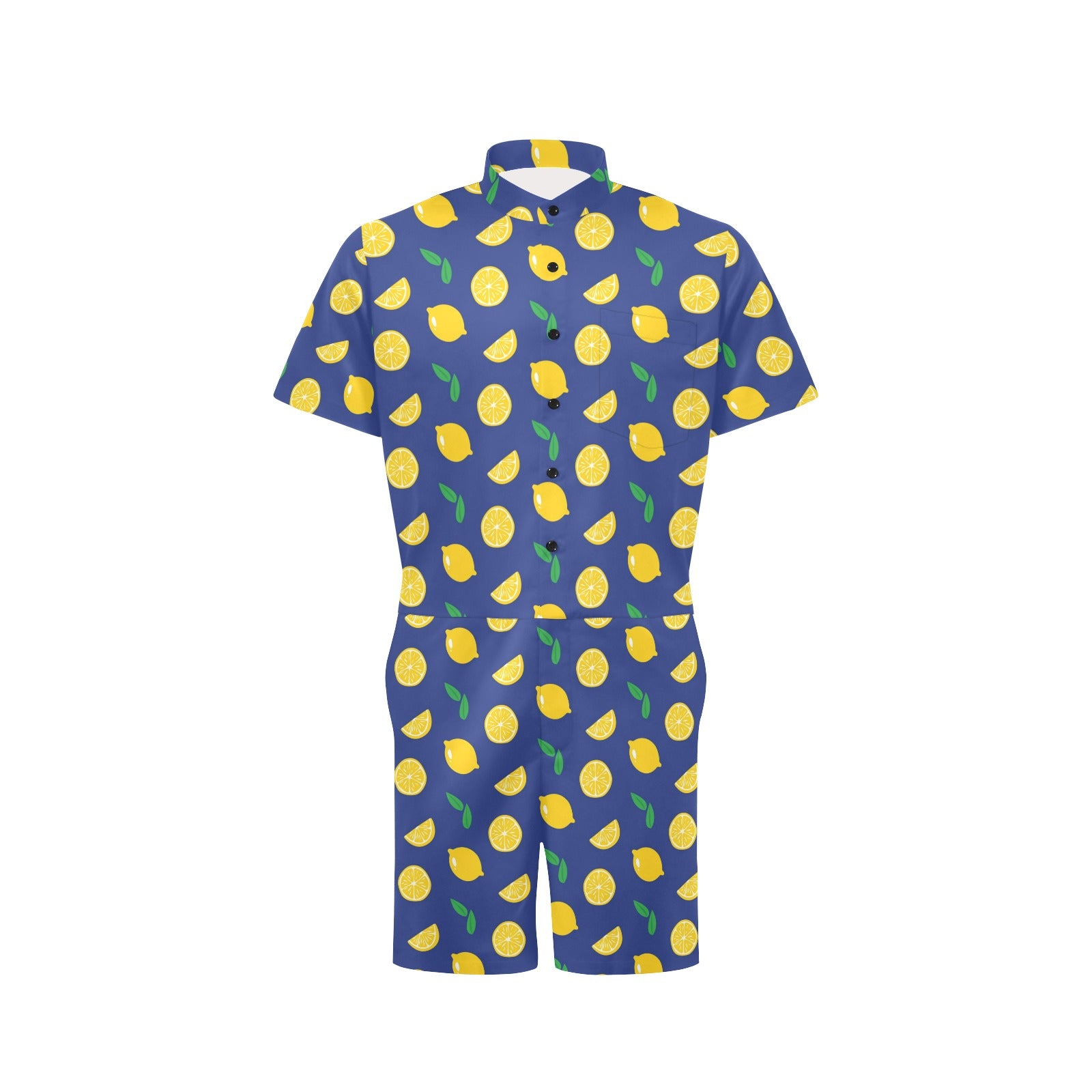 Citrus Pattern Print Design 02 Men's Romper Made to Order Item. It is hand-cut and sewn just for your order! This process starts as soon as your order is placed and may have a processing time of 5-9 business days before it ships.