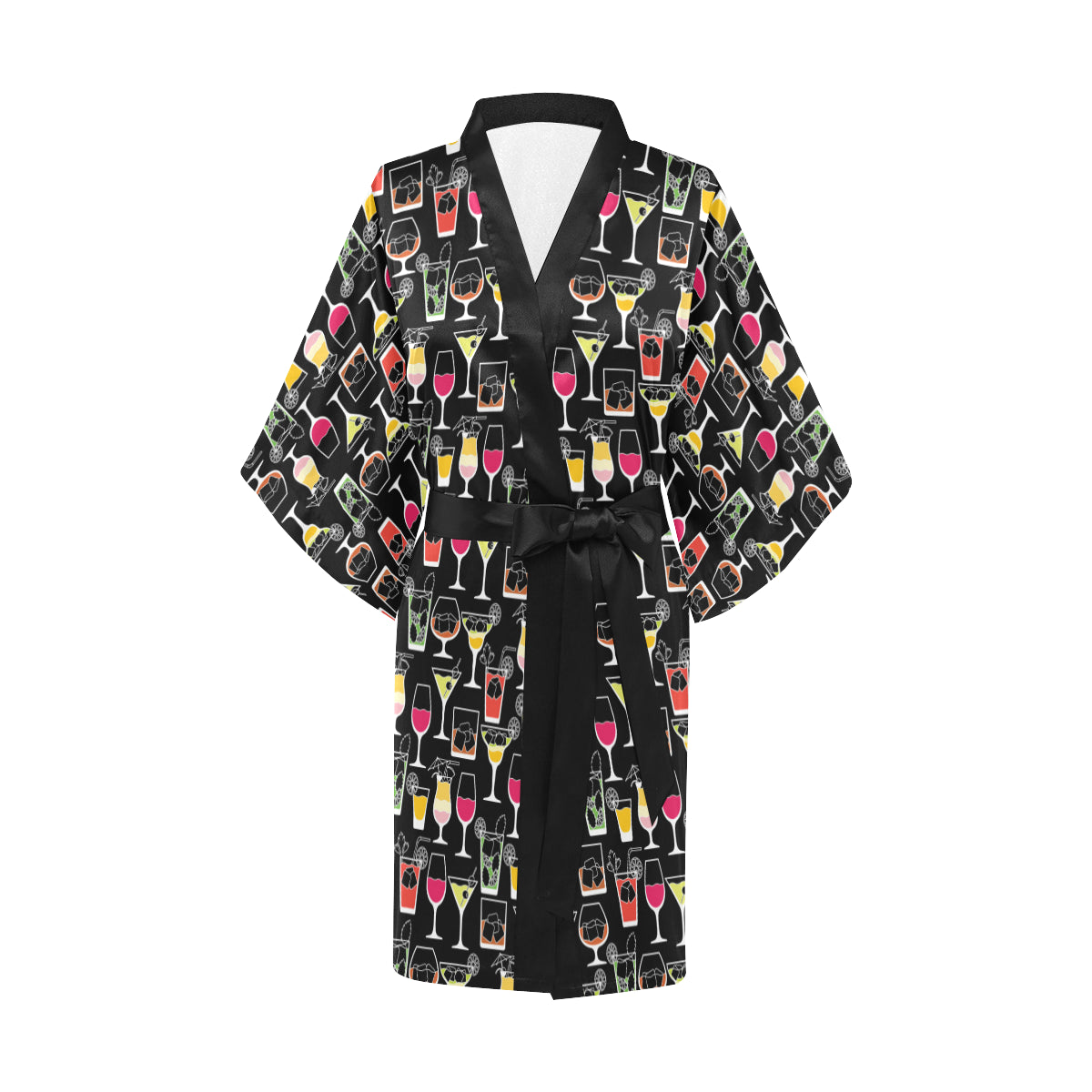 Cocktail Pattern Print Design 01 Women's Short Kimono Made to Order Item. It is hand-cut and sewn just for your order! This process starts as soon as your order is placed and may have a processing time of 5-9 business days before it ships.
