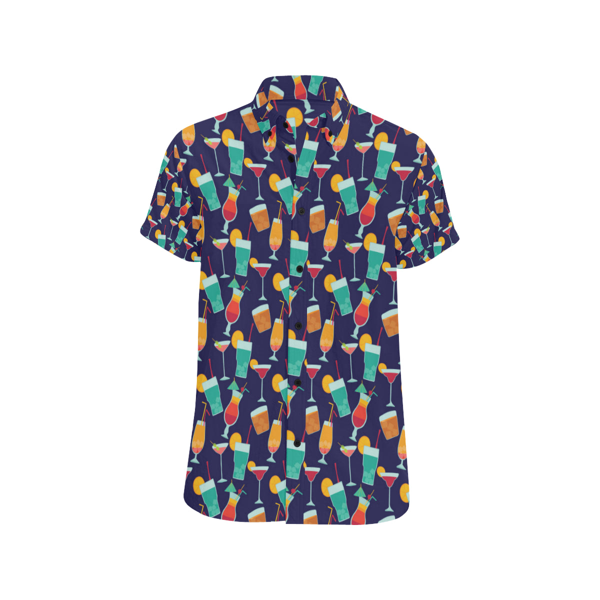 Cocktail Pattern Print Design 06 Men's Short Sleeve Button Up Shirt Made to Order Item. It is hand-cut and sewn just for your order! This process starts as soon as your order is placed and may have a processing time of 5-9 business days before it ships.