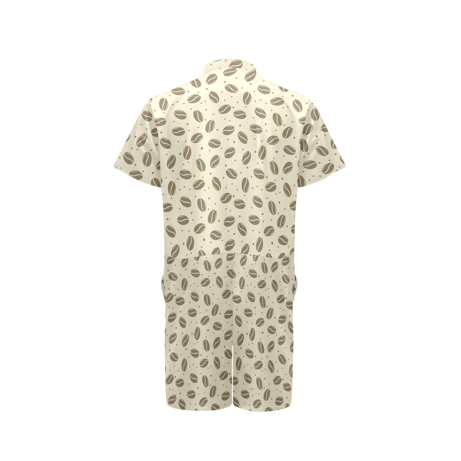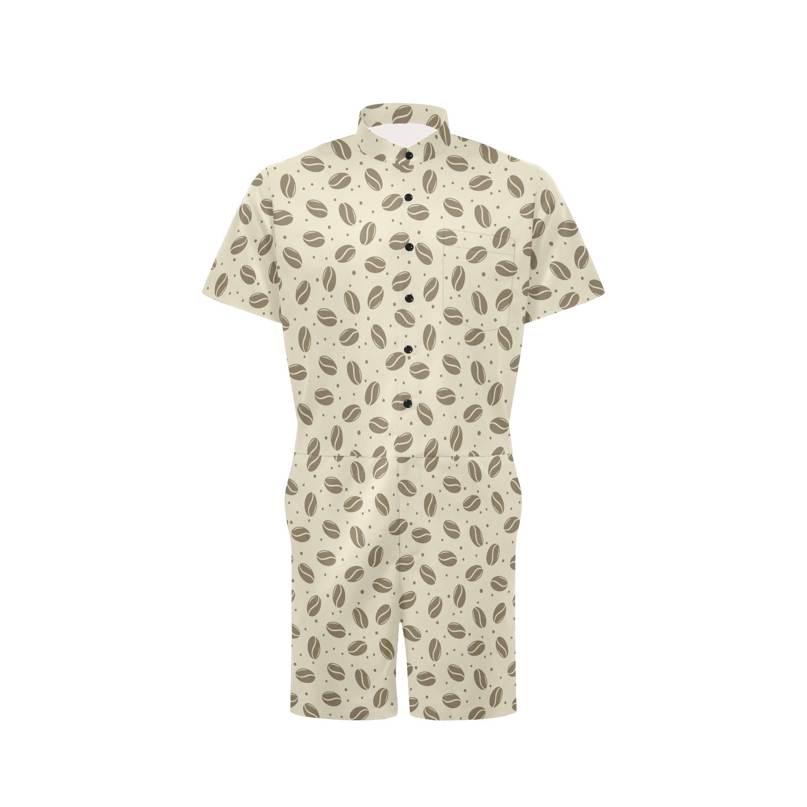 Coffee Pattern Print Design 02 Men's Romper Made to Order Item. It is hand-cut and sewn just for your order! This process starts as soon as your order is placed and may have a processing time of 5-9 business days before it ships.