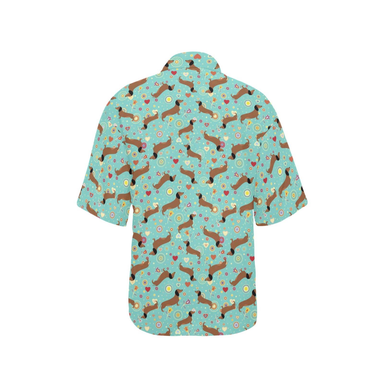 Dachshund with Floral Print Pattern Women's Hawaiian Shirt