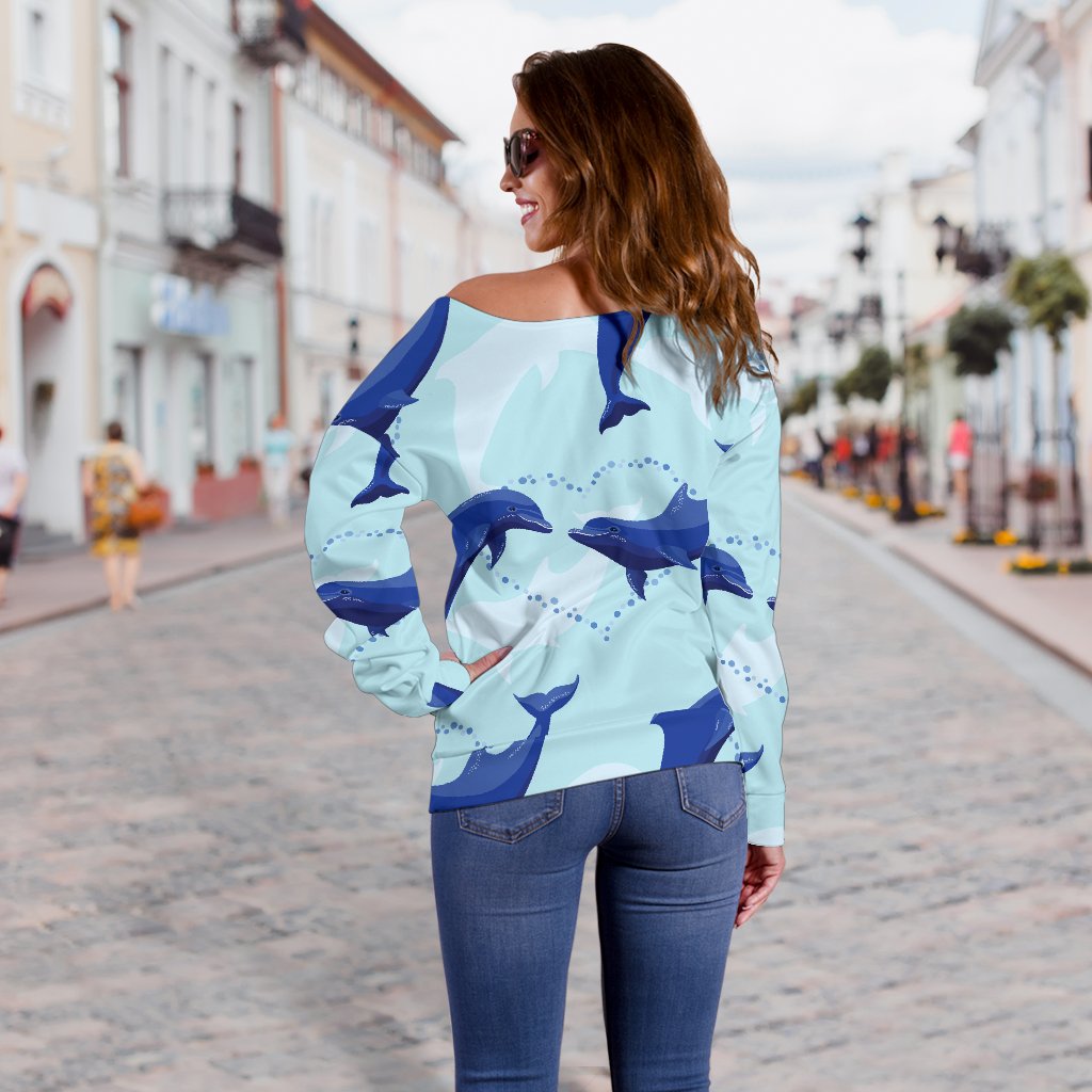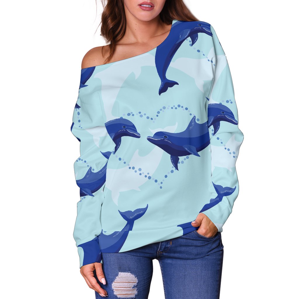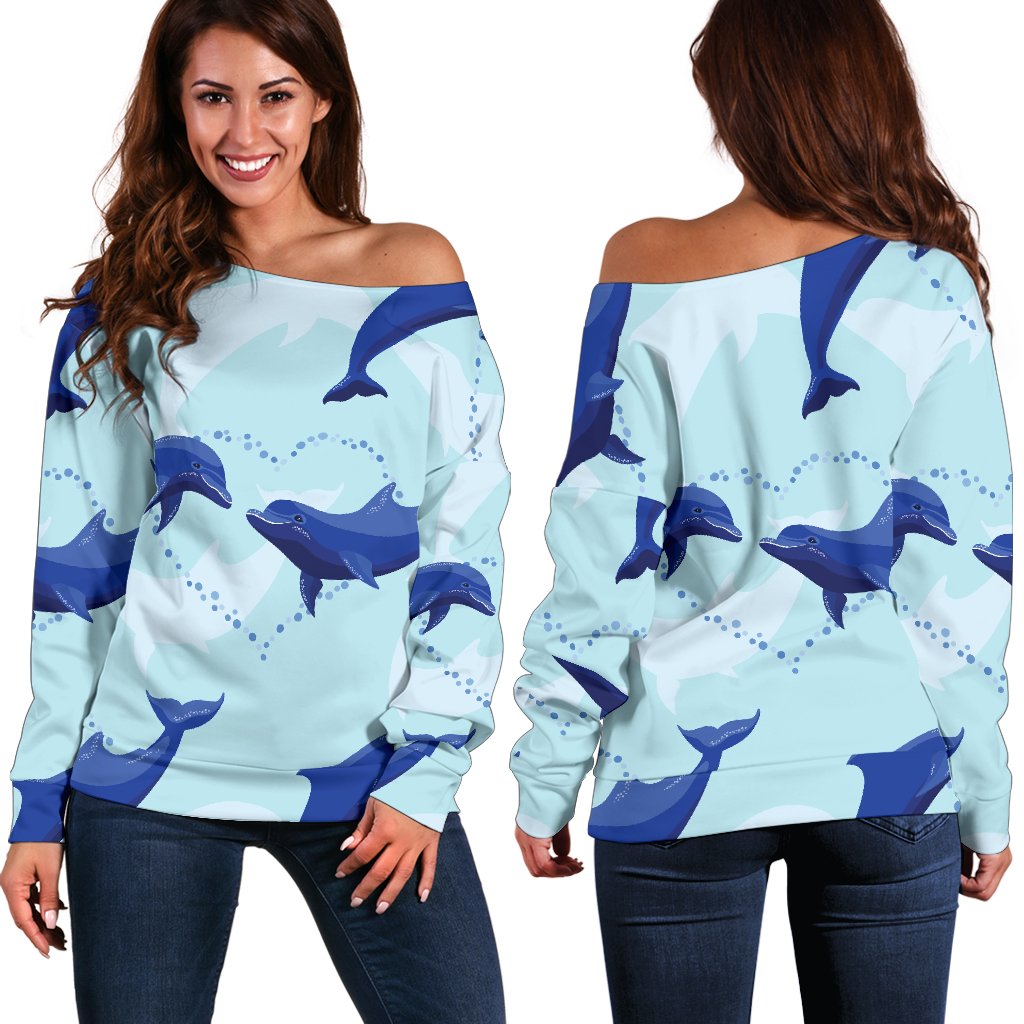 Dolphin Heart Pattern Off Shoulder Sweatshirt