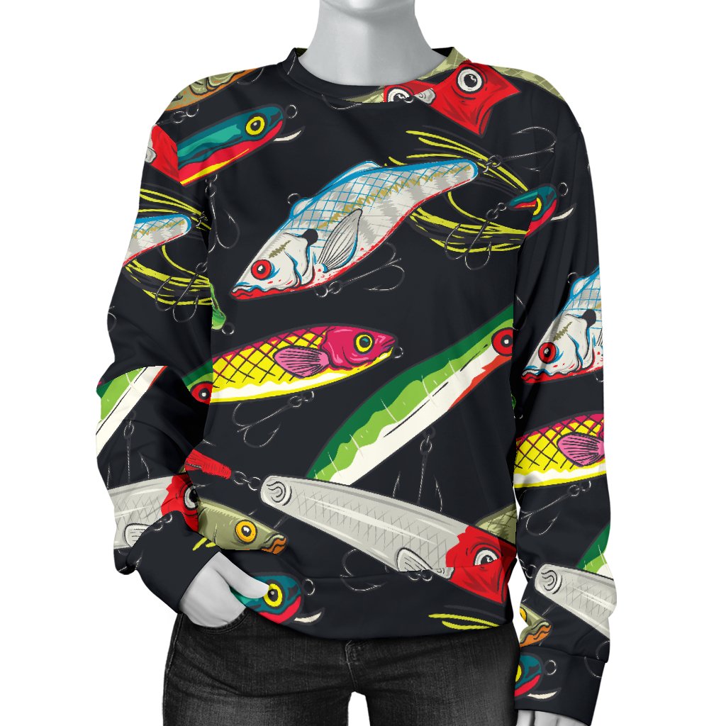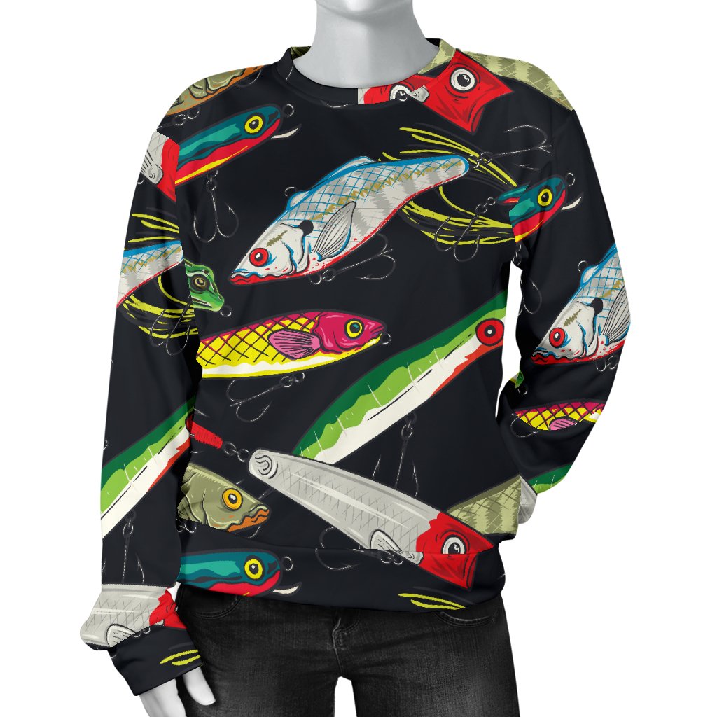 Fishing Bait Print Women Crewneck Sweatshirt, This is a Unique Design and Made to Order Item. Hand printed, pressed and sewn with love in our factory just for your order!