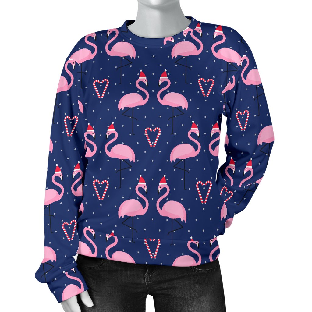 Flamingo Christmas Women Crewneck Sweatshirt, This is a Unique Design and Made to Order Item. Hand printed, pressed and sewn with love in our factory just for your order!
