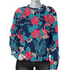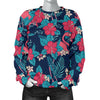 Flamingo Red Hibiscus Pattern Women Crewneck Sweatshirt