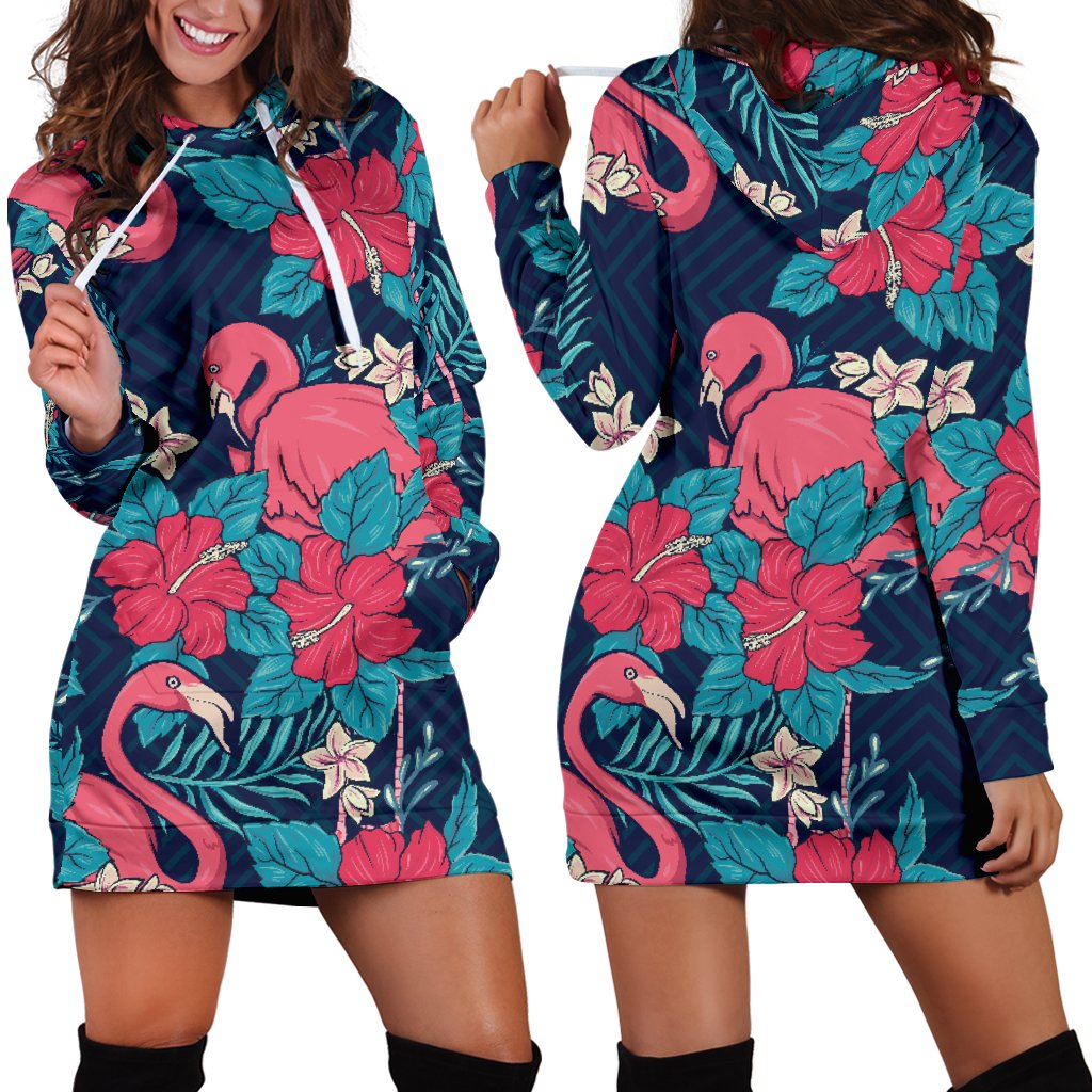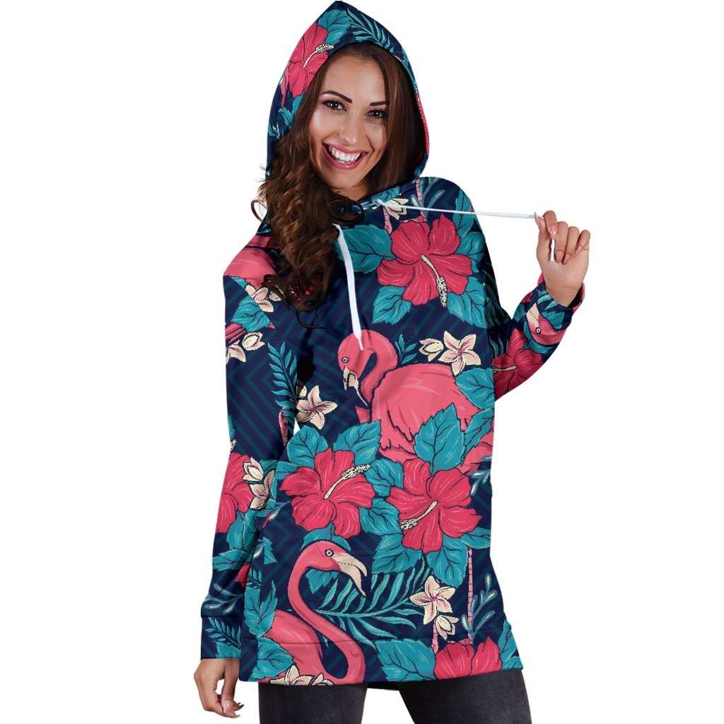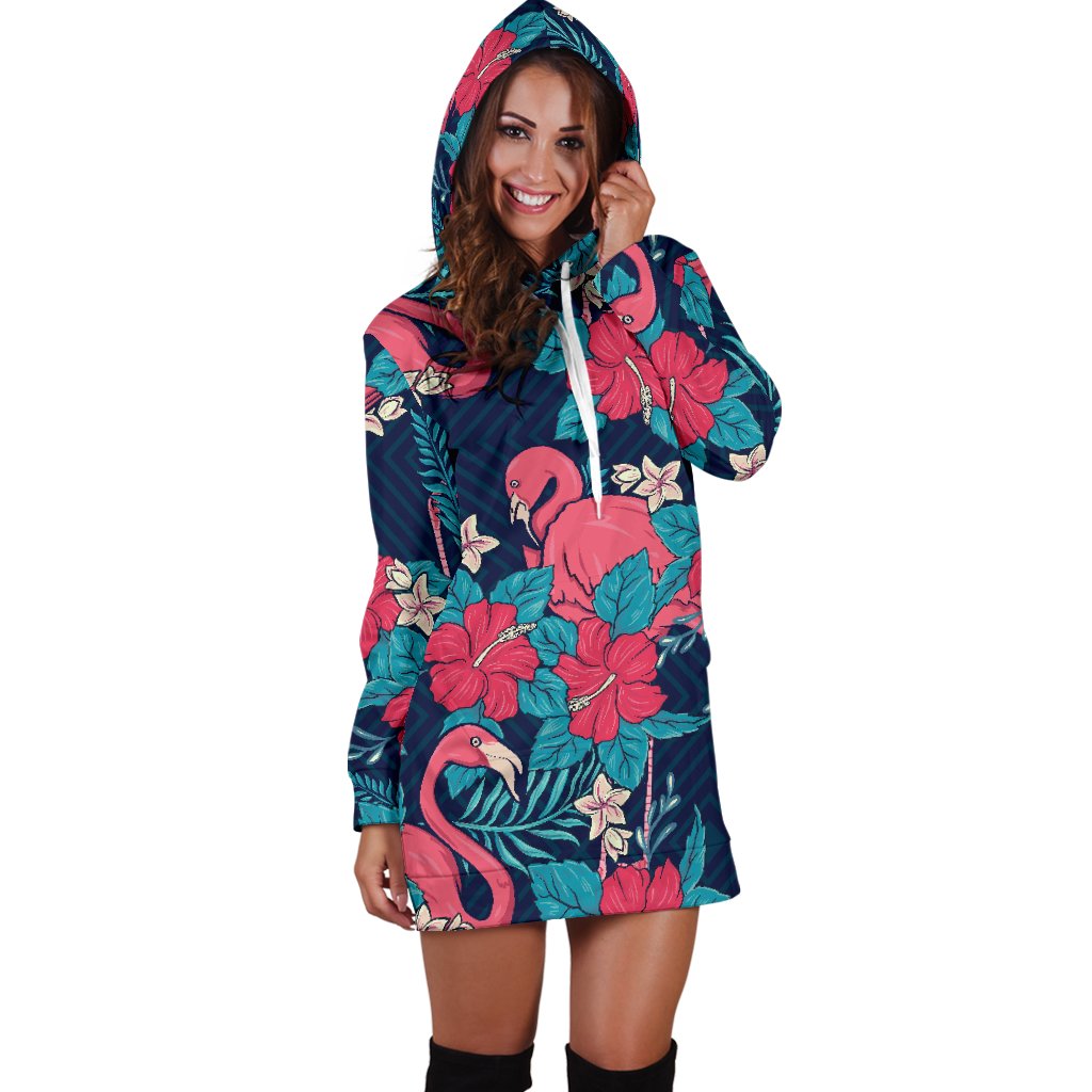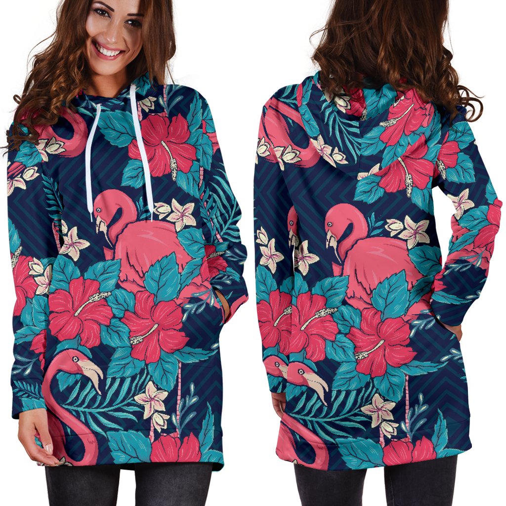 Flamingo Red Hibiscus Pattern Women Hoodie Dress