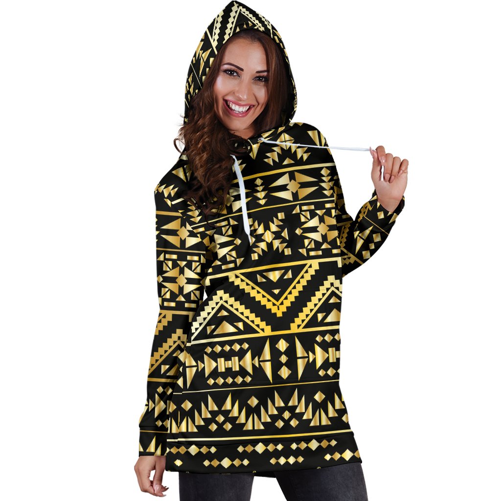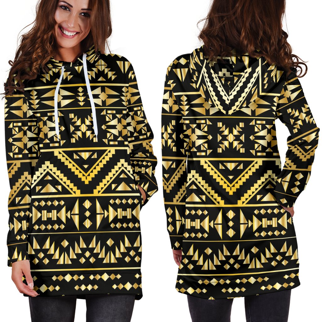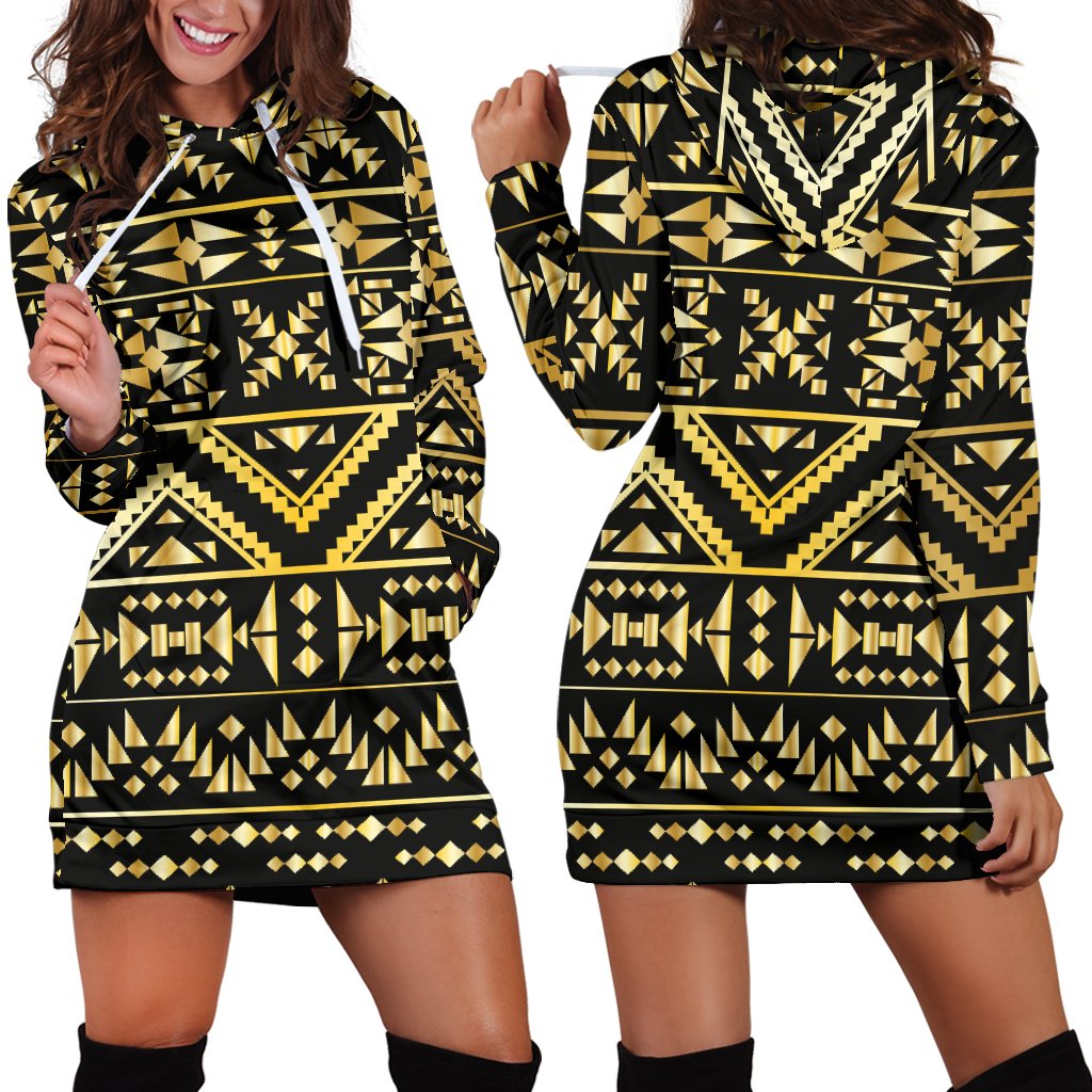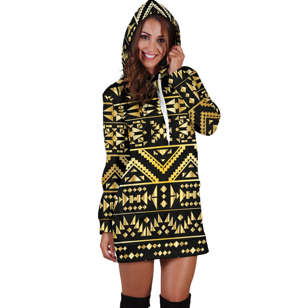 Gold Aztec Tribal Women Hoodie Dress