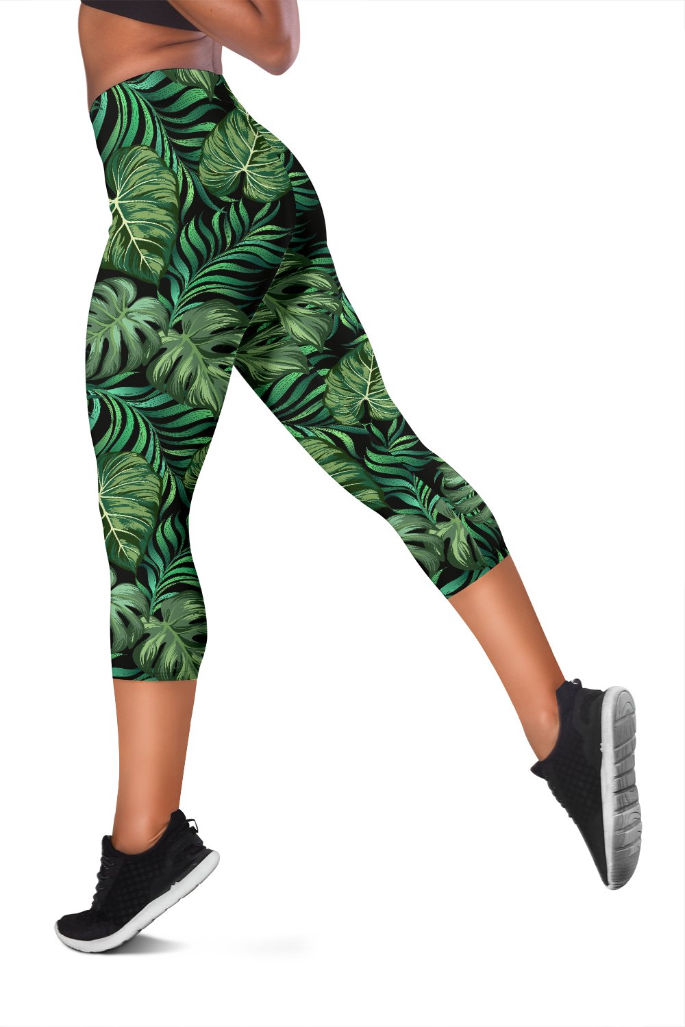 Green Fresh Tropical Palm Leaves Women Capris, This is a Unique Design and Made to Order Item. Hand printed, pressed and sewn with love in our factory just for your order!