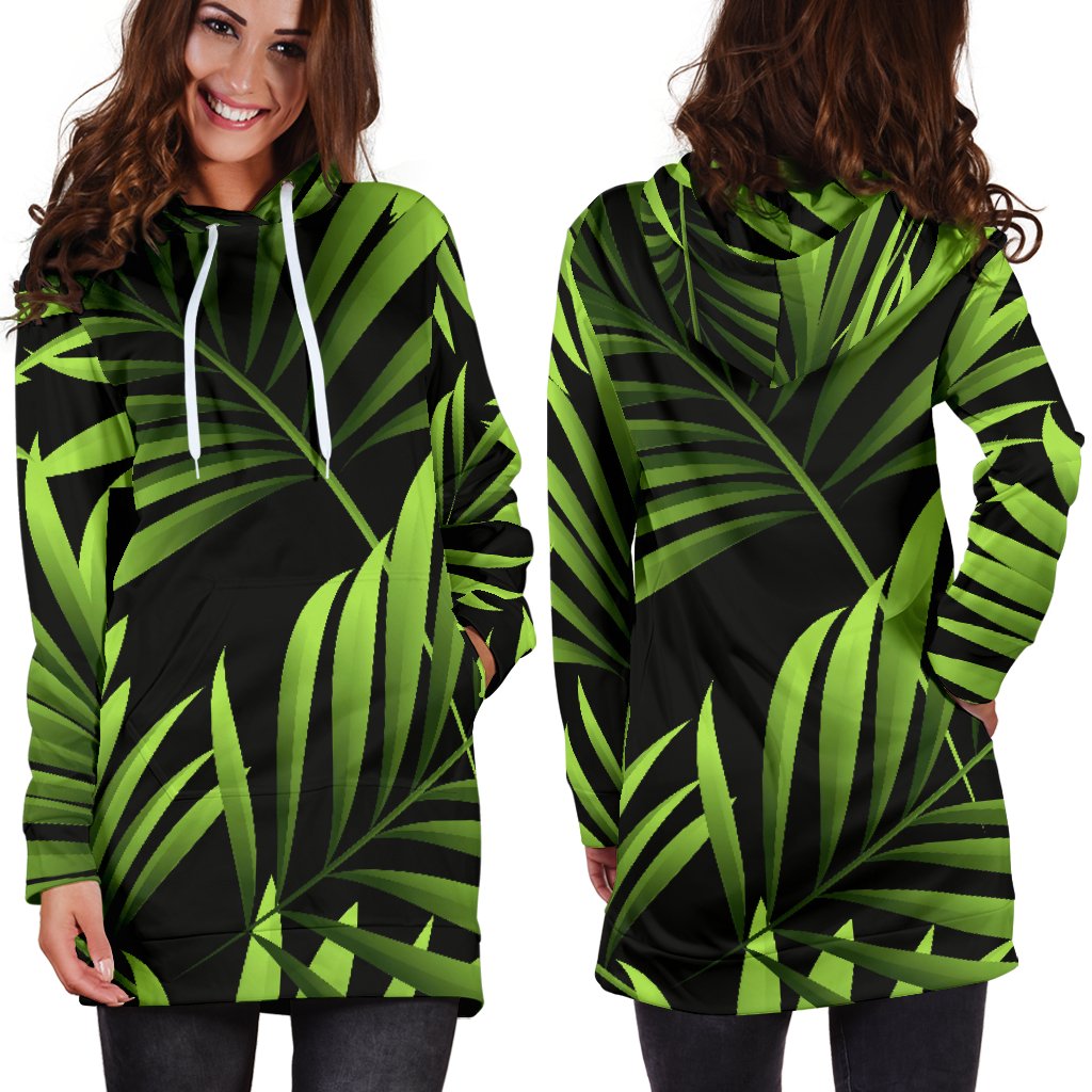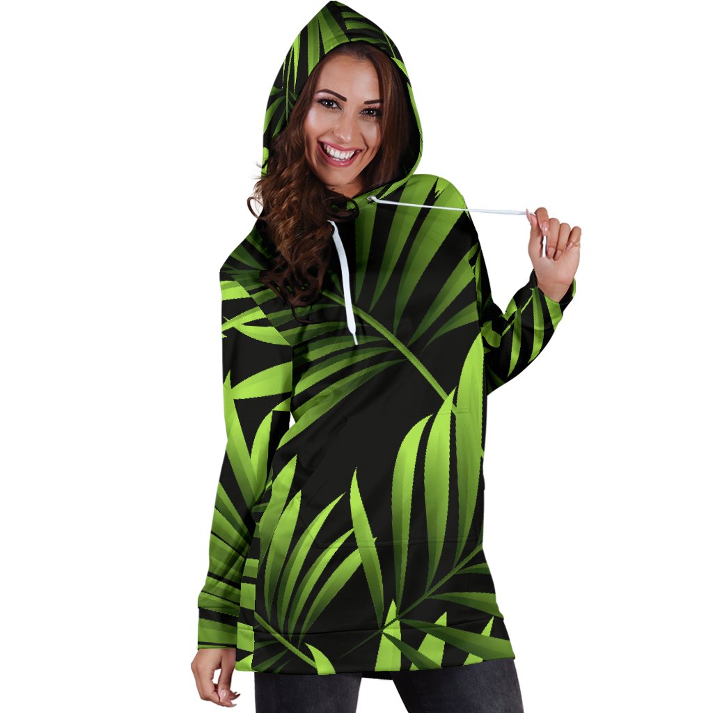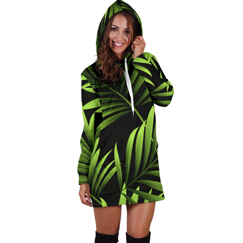 Green Neon Tropical Palm Leaves Women Hoodie Dress