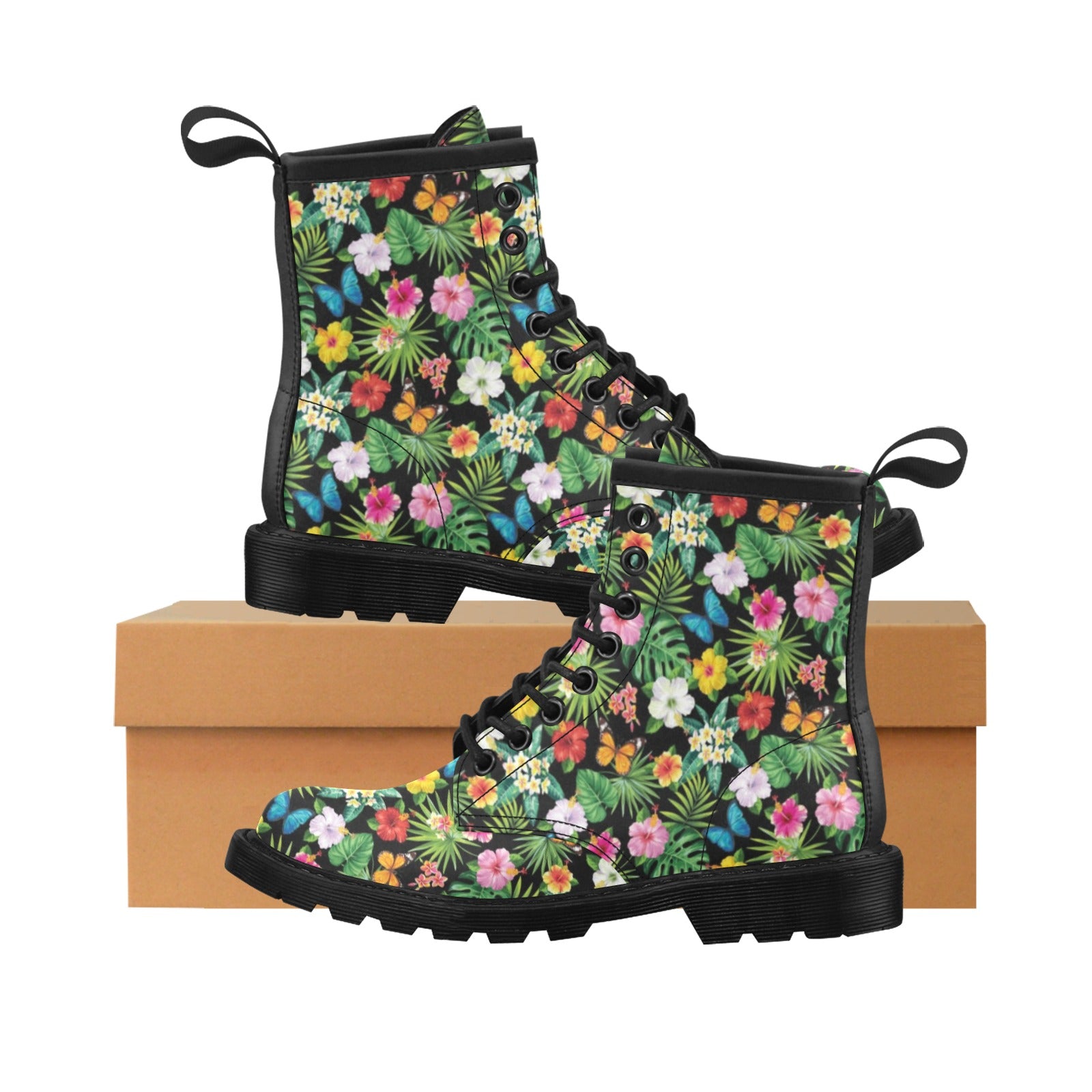 Hibiscus With Butterfly Print Design LKS305 Women's Boots Made to Order Item. It is hand-cut and sewn just for your order! This process starts as soon as your order is placed and may have a processing time of 5-9 business days before it ships.