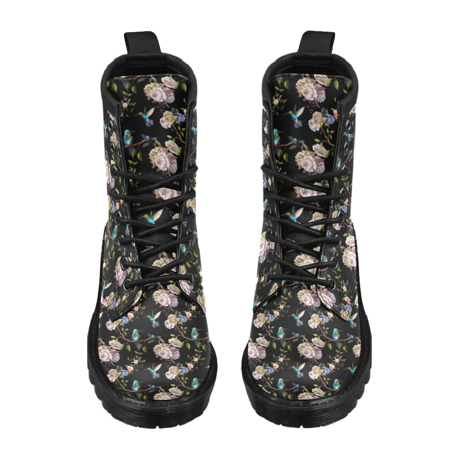 Hummingbird Flower Themed Print Women's Boots Made to Order Item. It is hand-cut and sewn just for your order! This process starts as soon as your order is placed and may have a processing time of 5-9 business days before it ships.