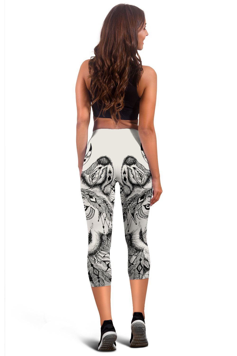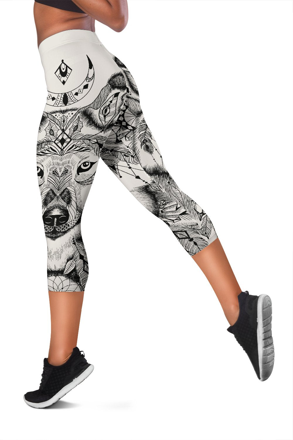 Indian Boho Wolf Women Capris, This is a Unique Design and Made to Order Item. Hand printed, pressed and sewn with love in our factory just for your order!
