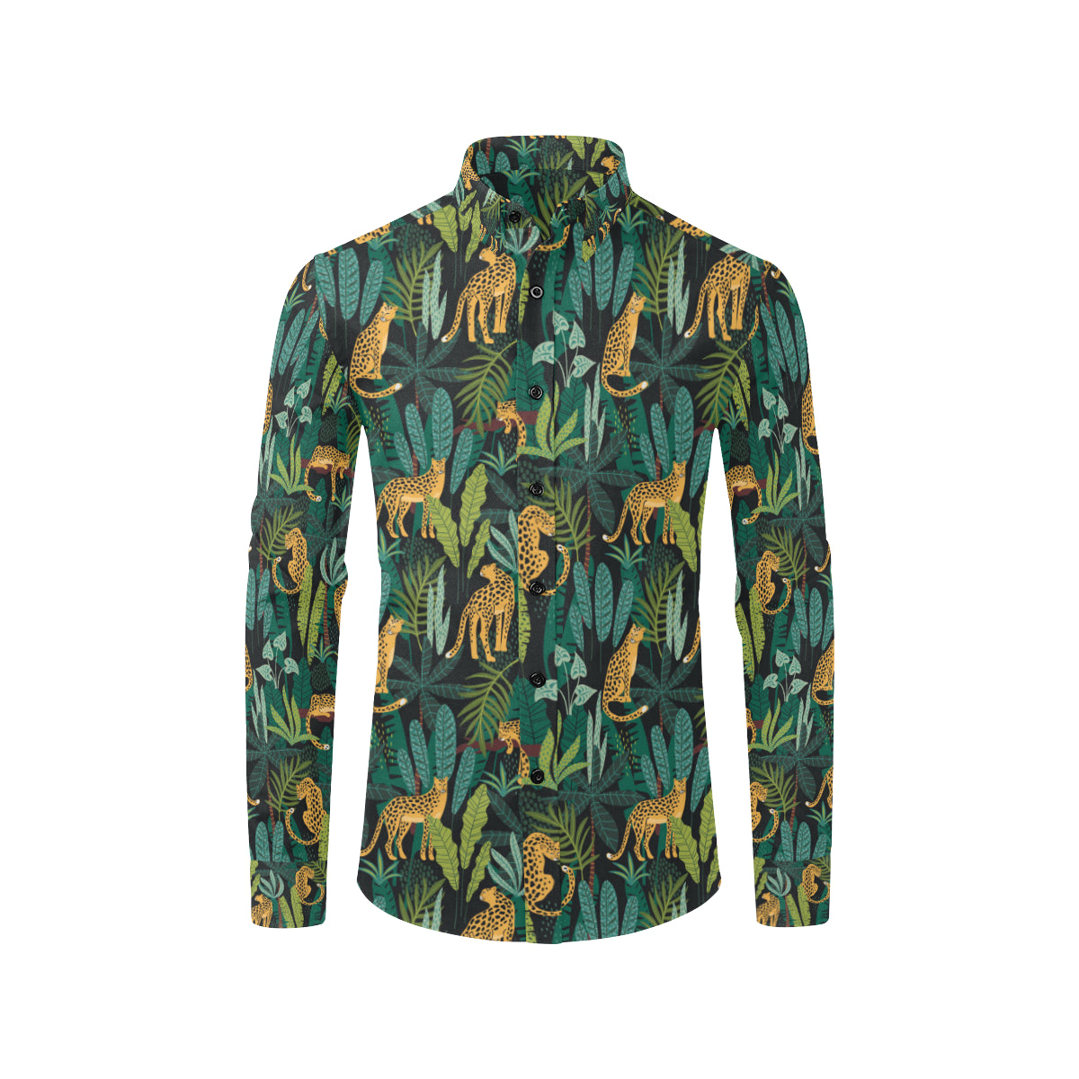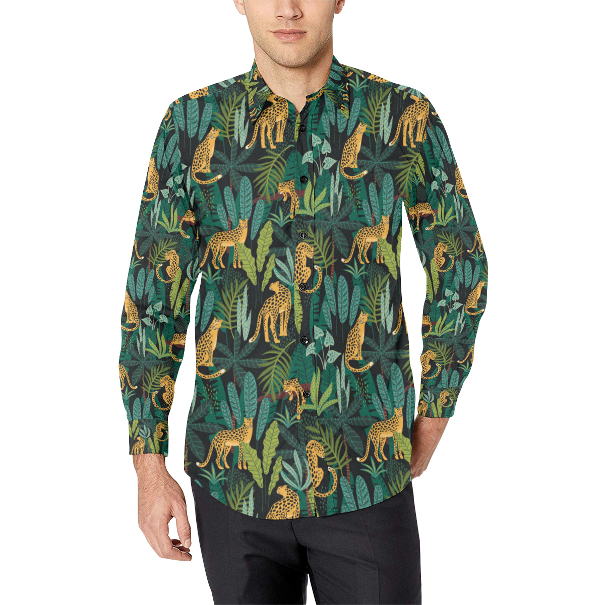 Jaguar Jungle Pattern Print Design 03 Men's Long Sleeve Shirt