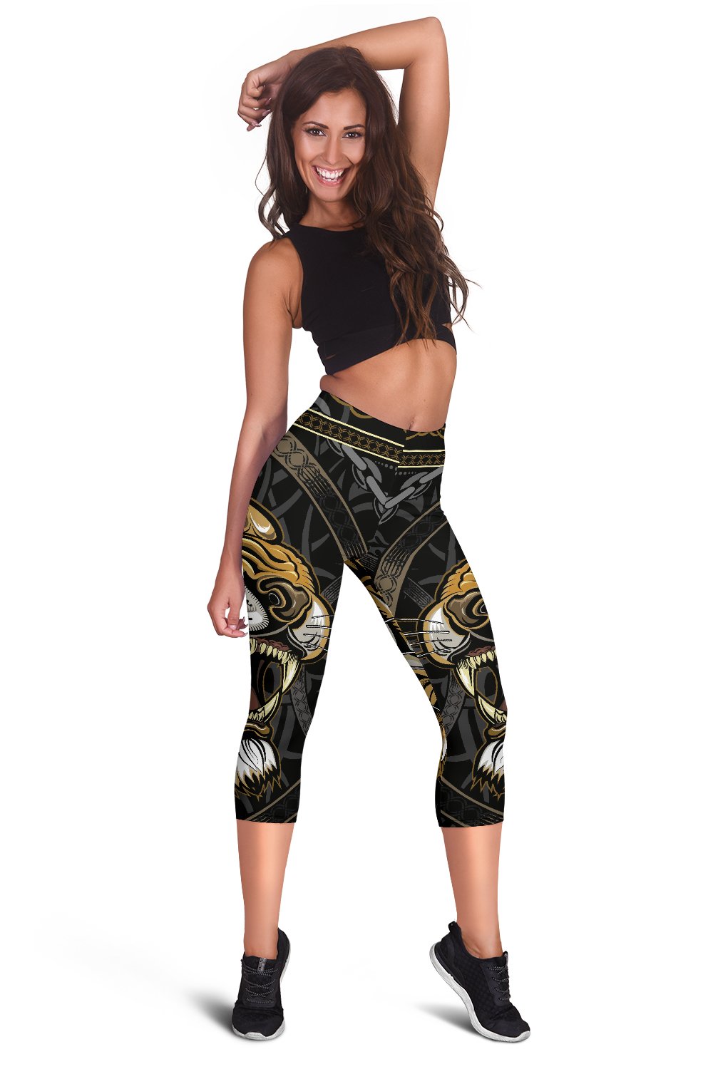 King Tiger Women Capris, This is a Unique Design and Made to Order Item. Hand printed, pressed and sewn with love in our factory just for your order!