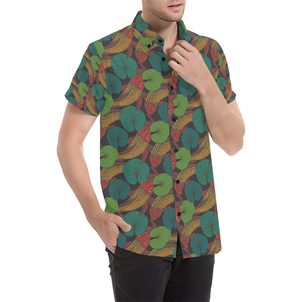 KOI Fish Pattern Print Design 01 Men's Short Sleeve Button Up Shirt Made to Order Item. It is hand-cut and sewn just for your order! This process starts as soon as your order is placed and may have a processing time of 5-9 business days before it ships.