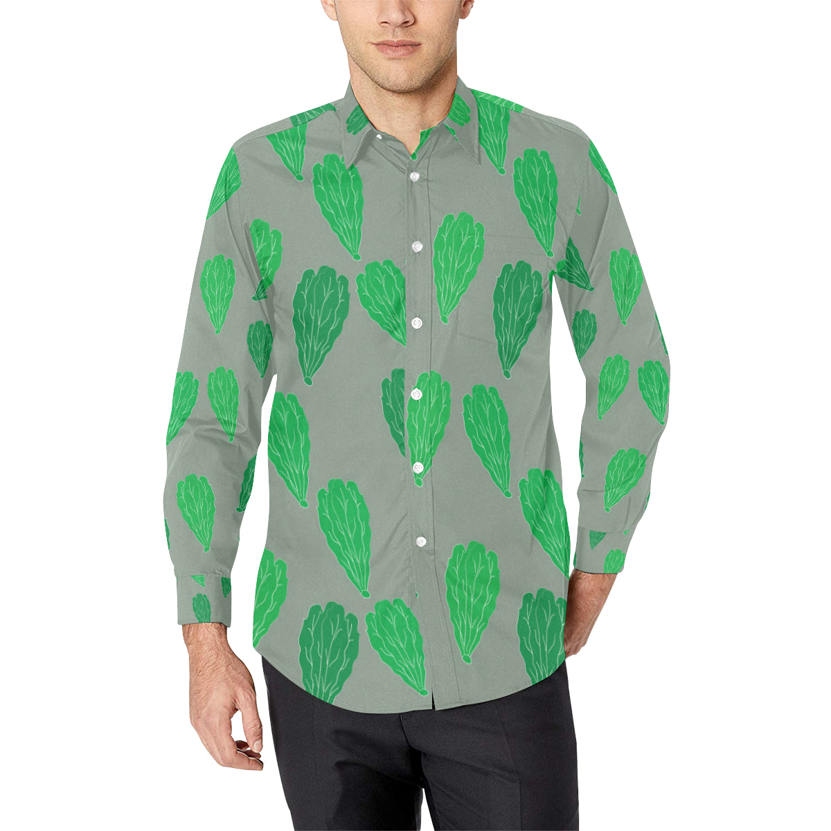 Lettuce Pattern Print Design 02 Men's Long Sleeve Shirt