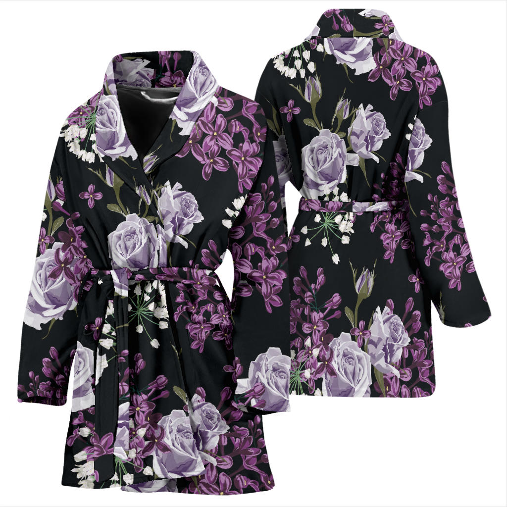 Lilac Pattern Print Design LI04 Women Bathrobe