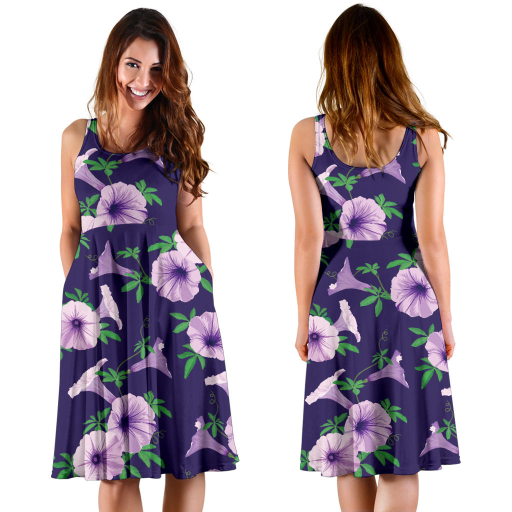 Morning Glory Pattern Print Design MG01 Midi Dress