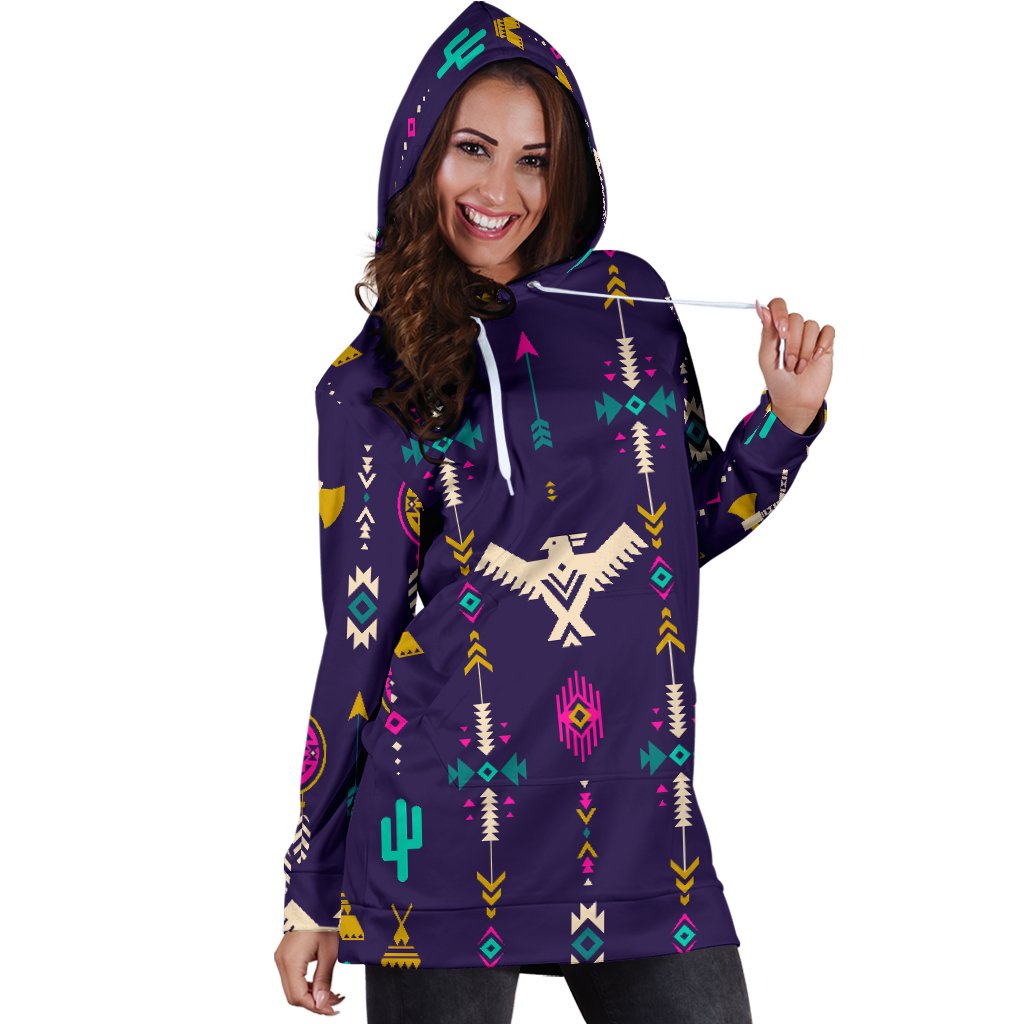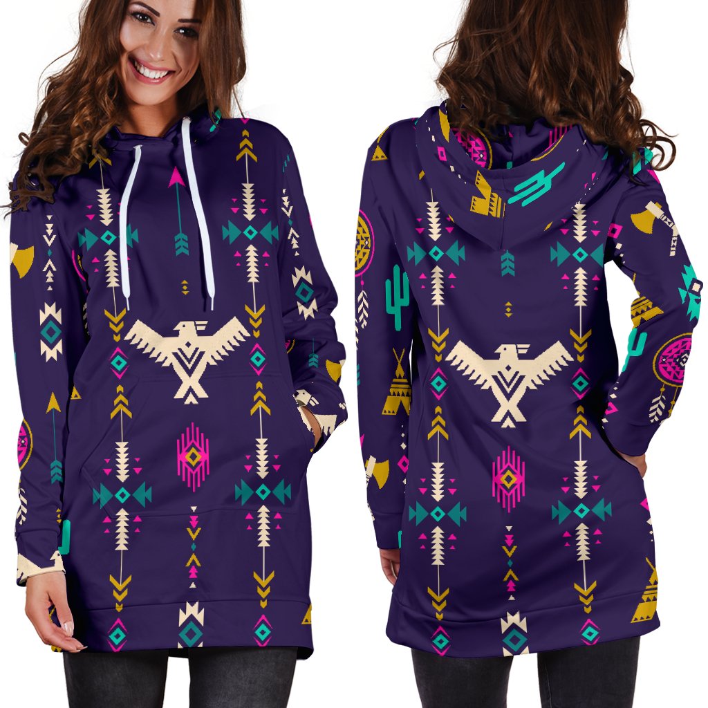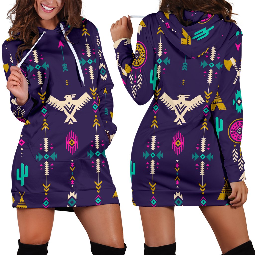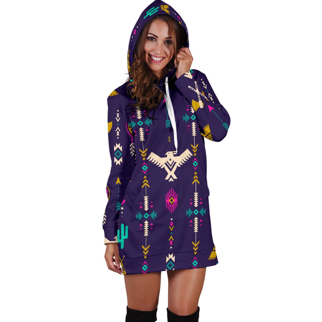 Native American Eagle Indian Pattern Women Hoodie Dress