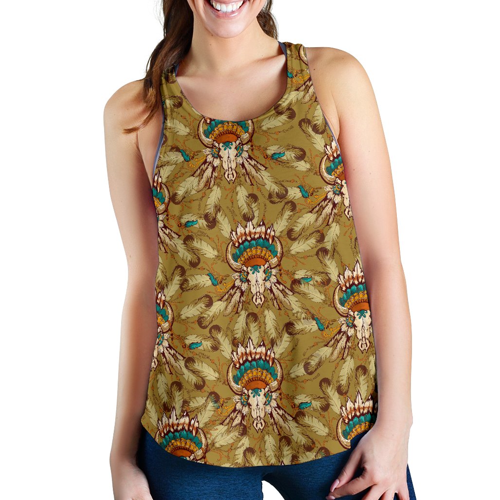 Native Indian Buffalo head Women Racerback Tank Top