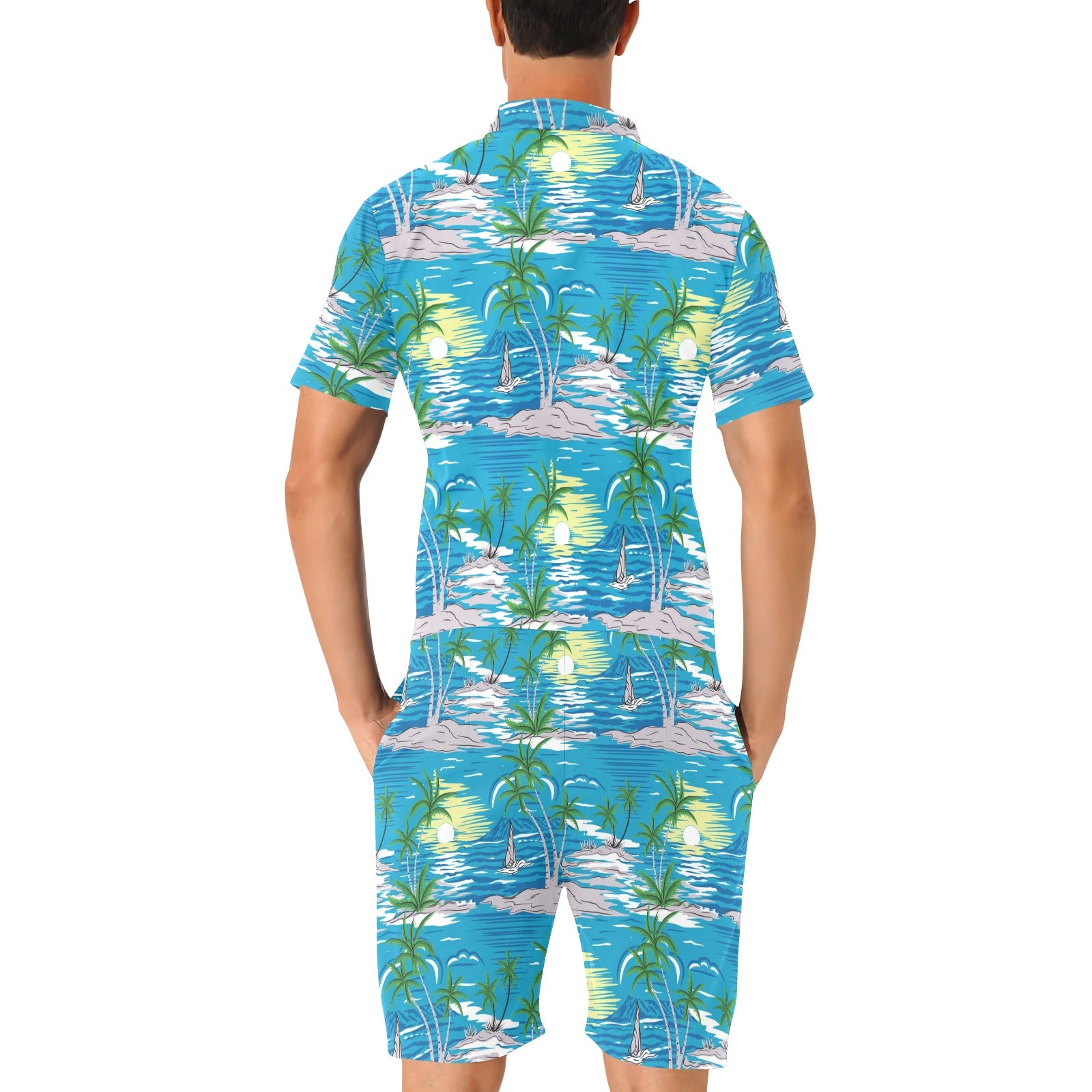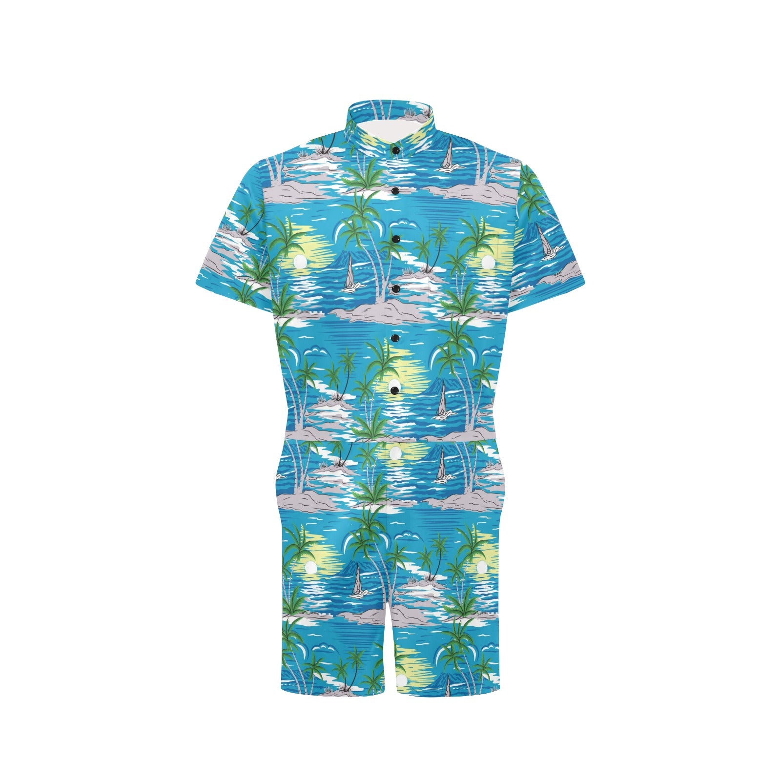 Palm Tree Beach Men's Romper Made to Order Item. It is hand-cut and sewn just for your order! This process starts as soon as your order is placed and may have a processing time of 5-9 business days before it ships.