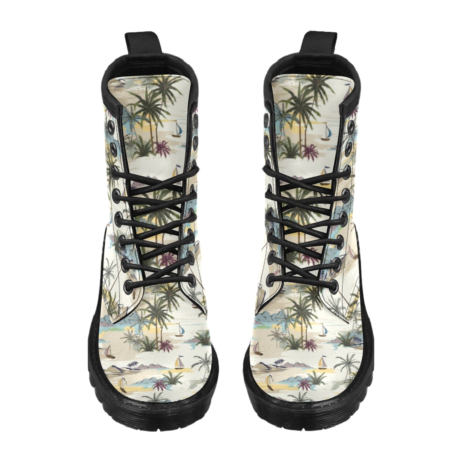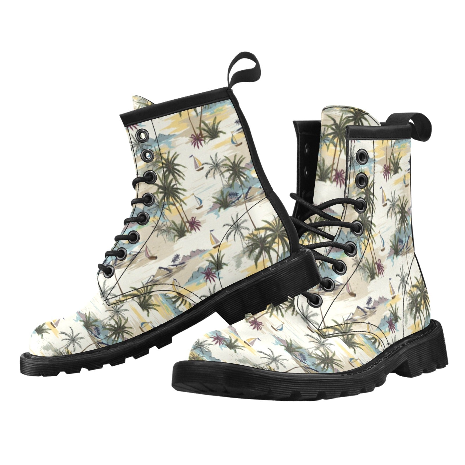 Palm Tree Beach Print Women's Boots Made to Order Item. It is hand-cut and sewn just for your order! This process starts as soon as your order is placed and may have a processing time of 5-9 business days before it ships.