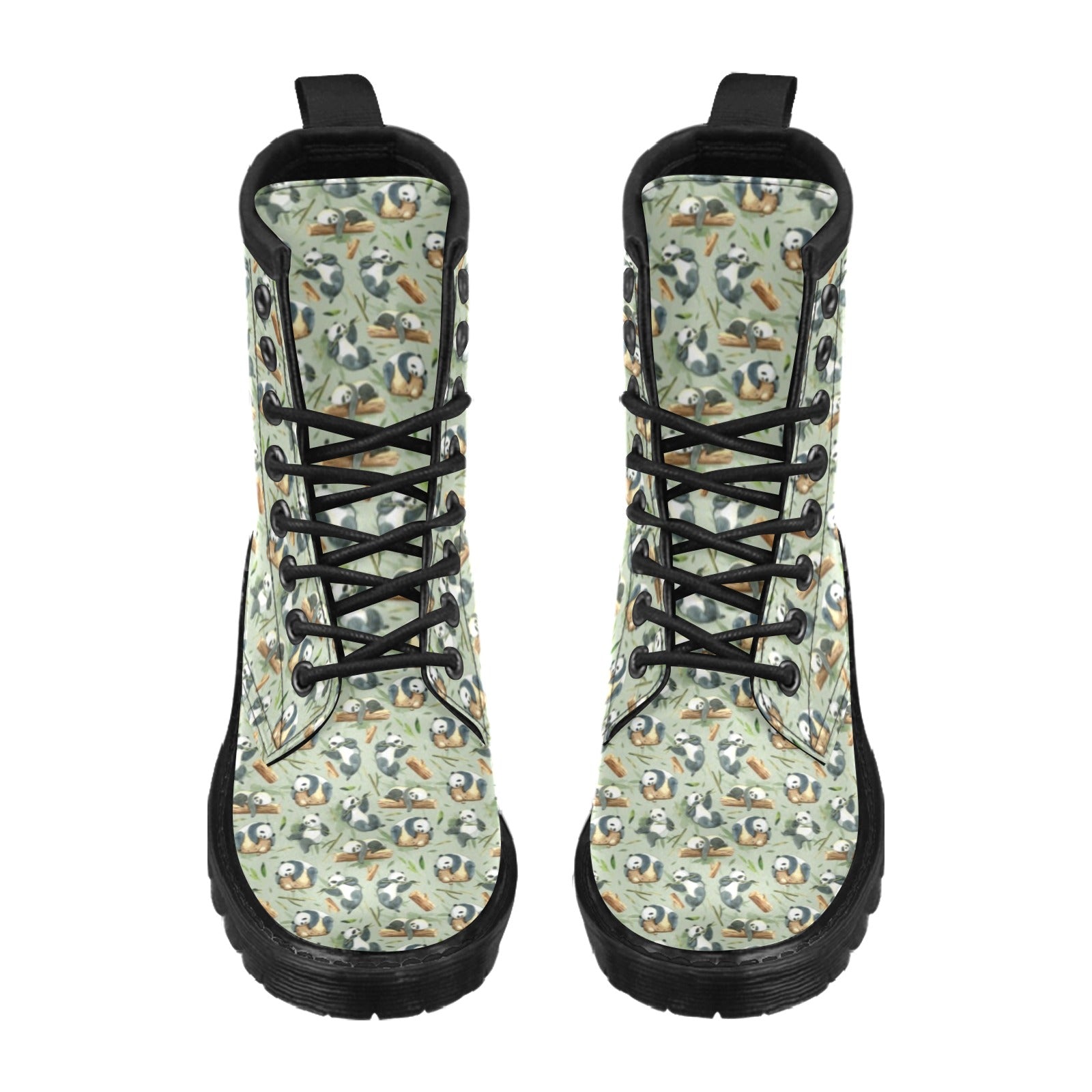 Panda Bear Design Bamboo Print Women's Boots Made to Order Item. It is hand-cut and sewn just for your order! This process starts as soon as your order is placed and may have a processing time of 5-9 business days before it ships.