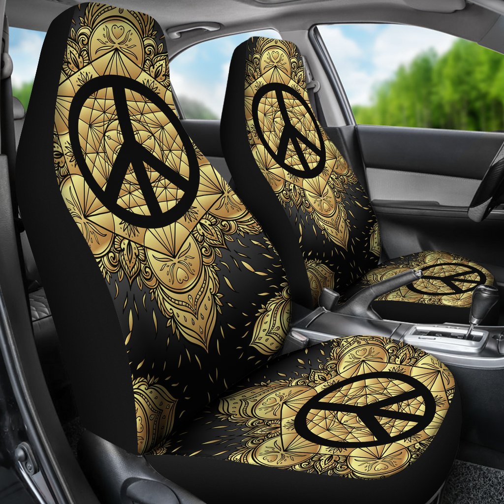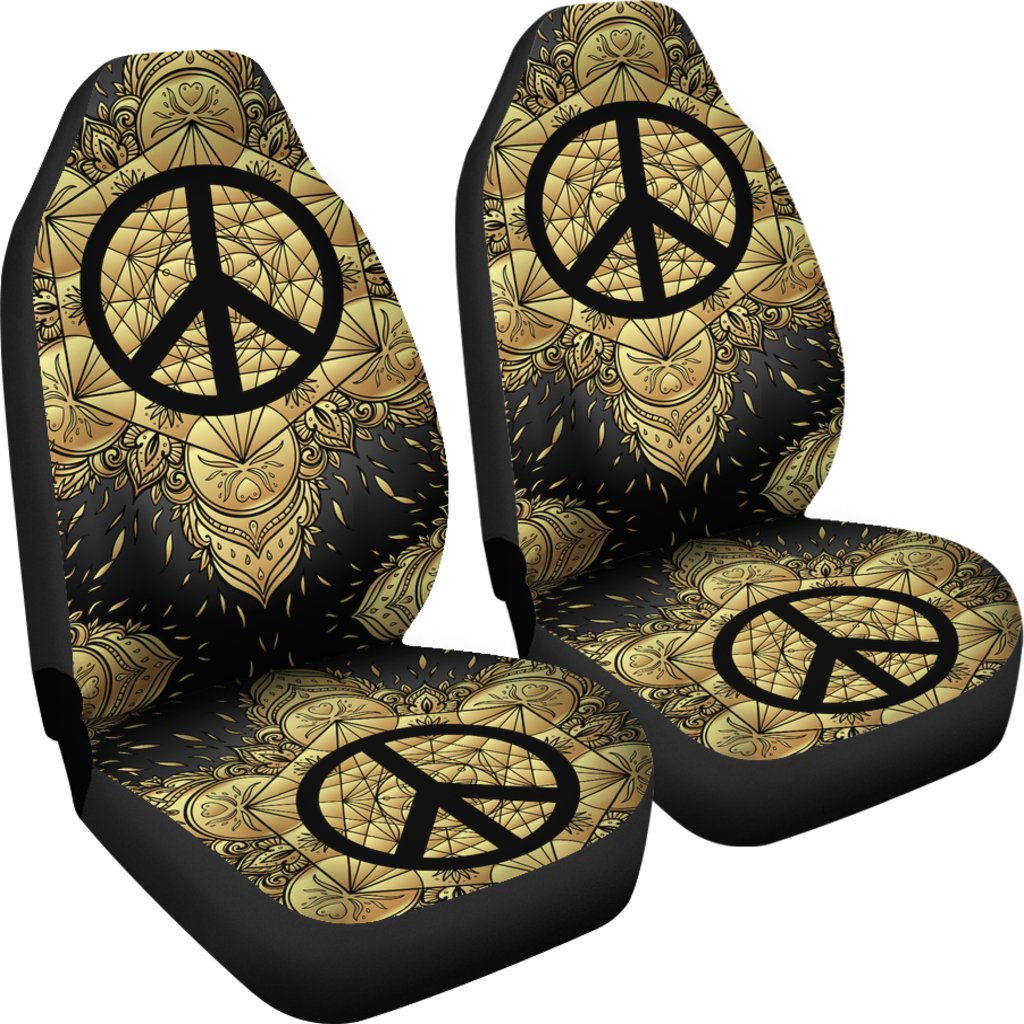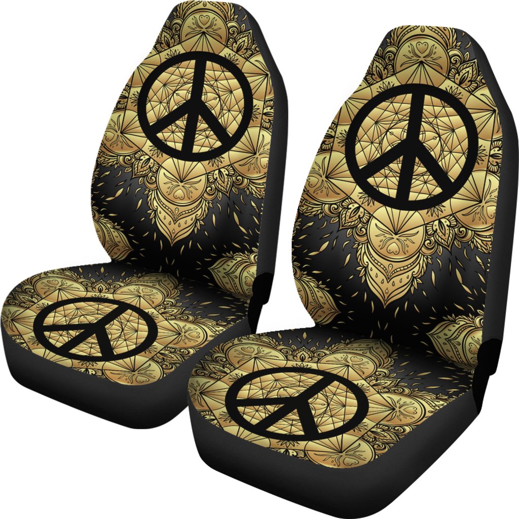 Peace sign Gold Mandala Universal Fit Car Seat Covers